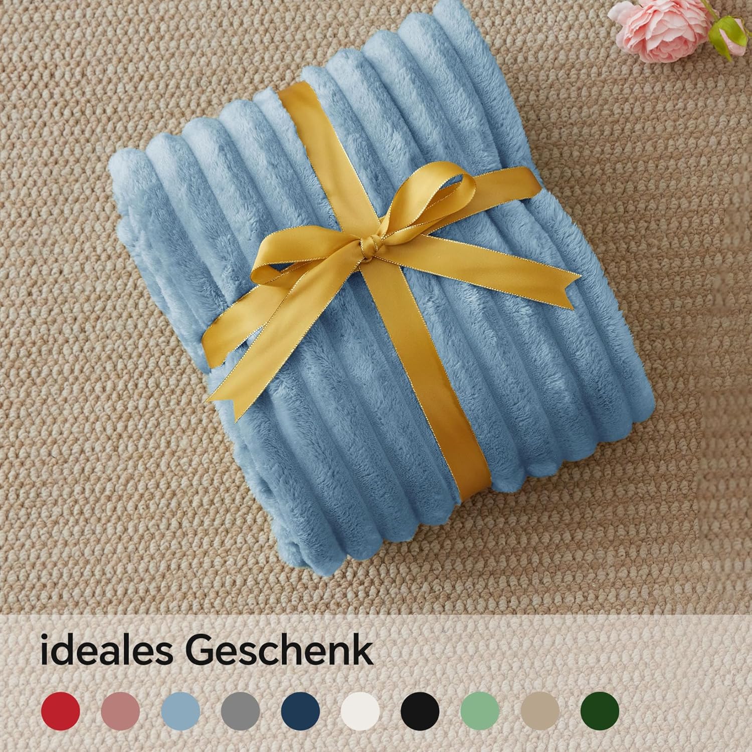 Пухкаво одеяло BEDELITE, малко - меки фланелени одеяла, сини, 125 x 150 см за диван, декоративни райета, поларено одеяло, светло синьо, като покривало за диван за хол, одеяло с широка употреба