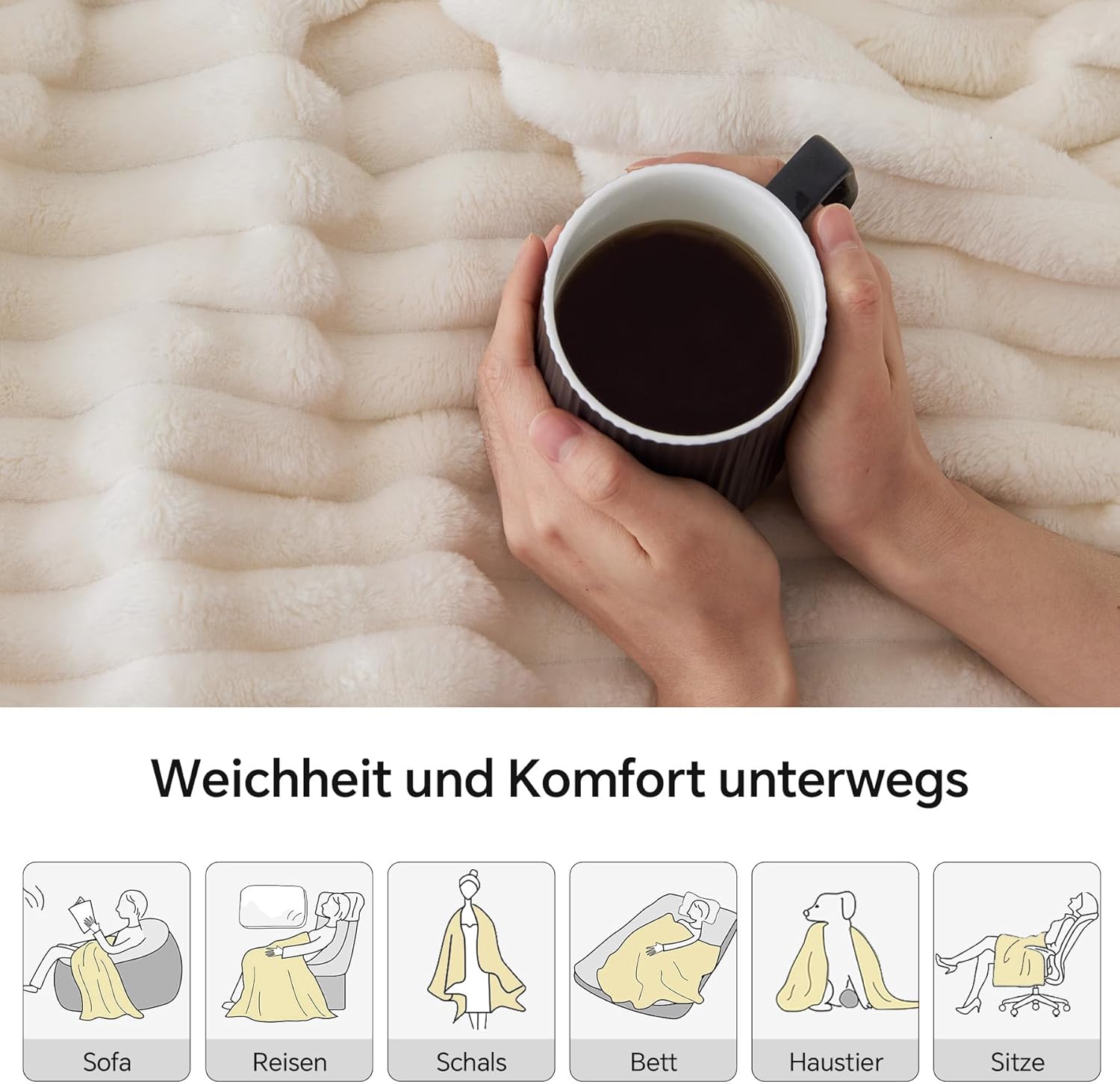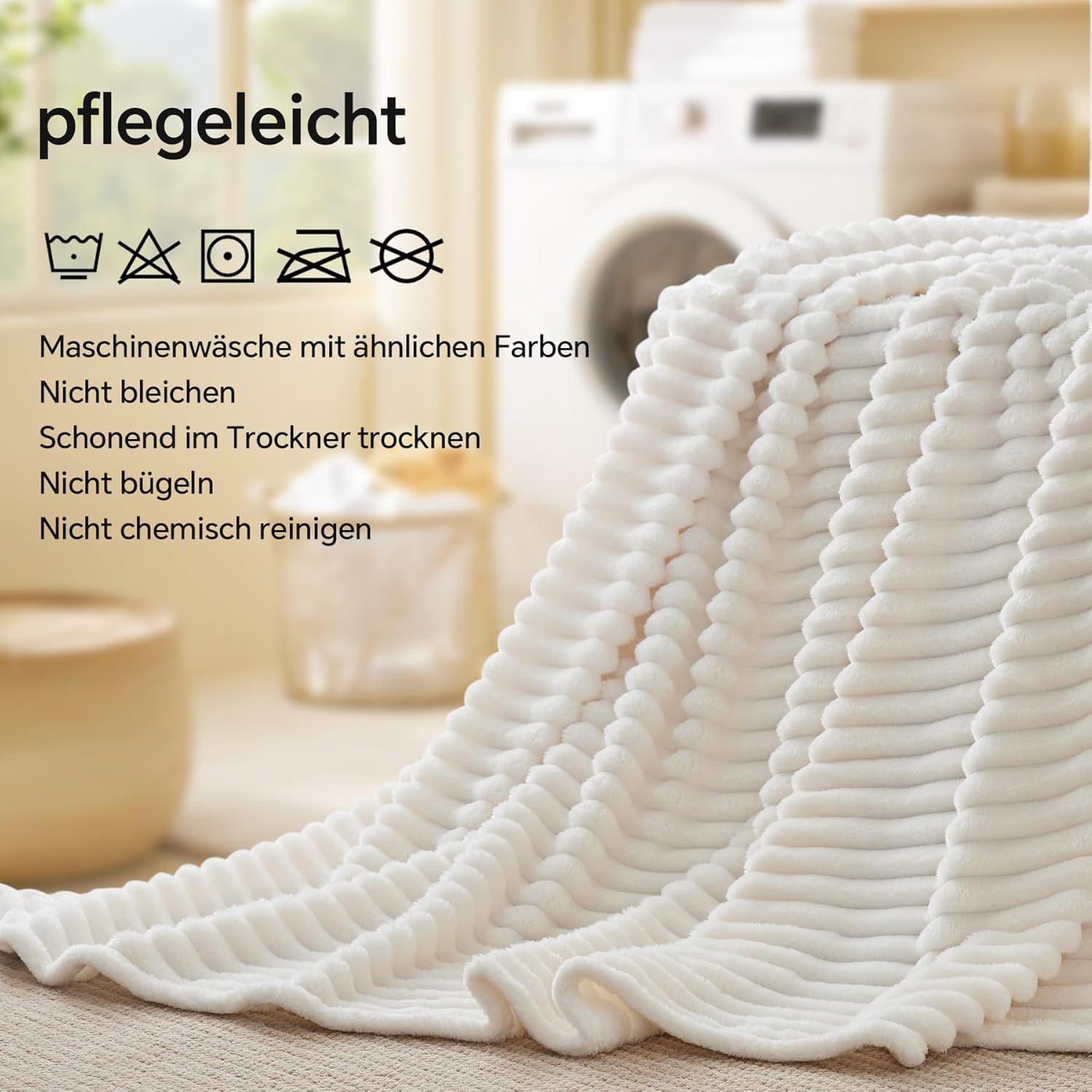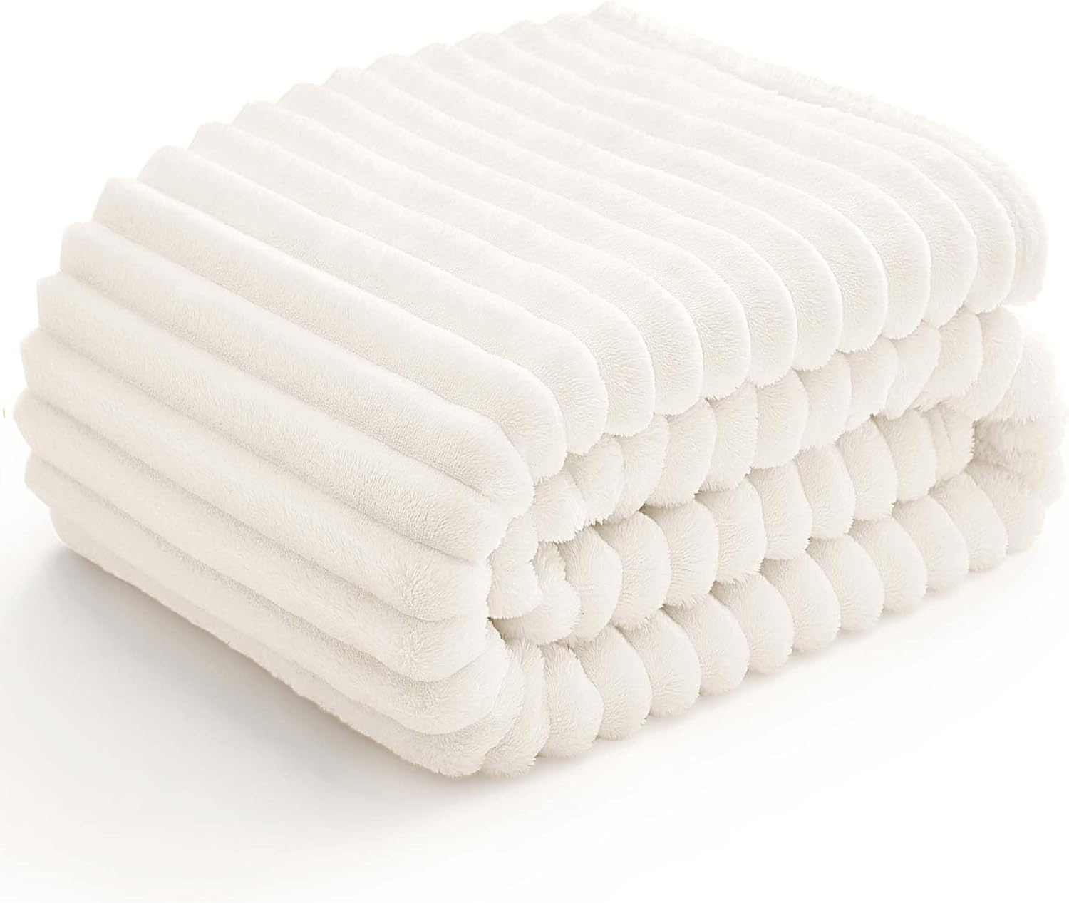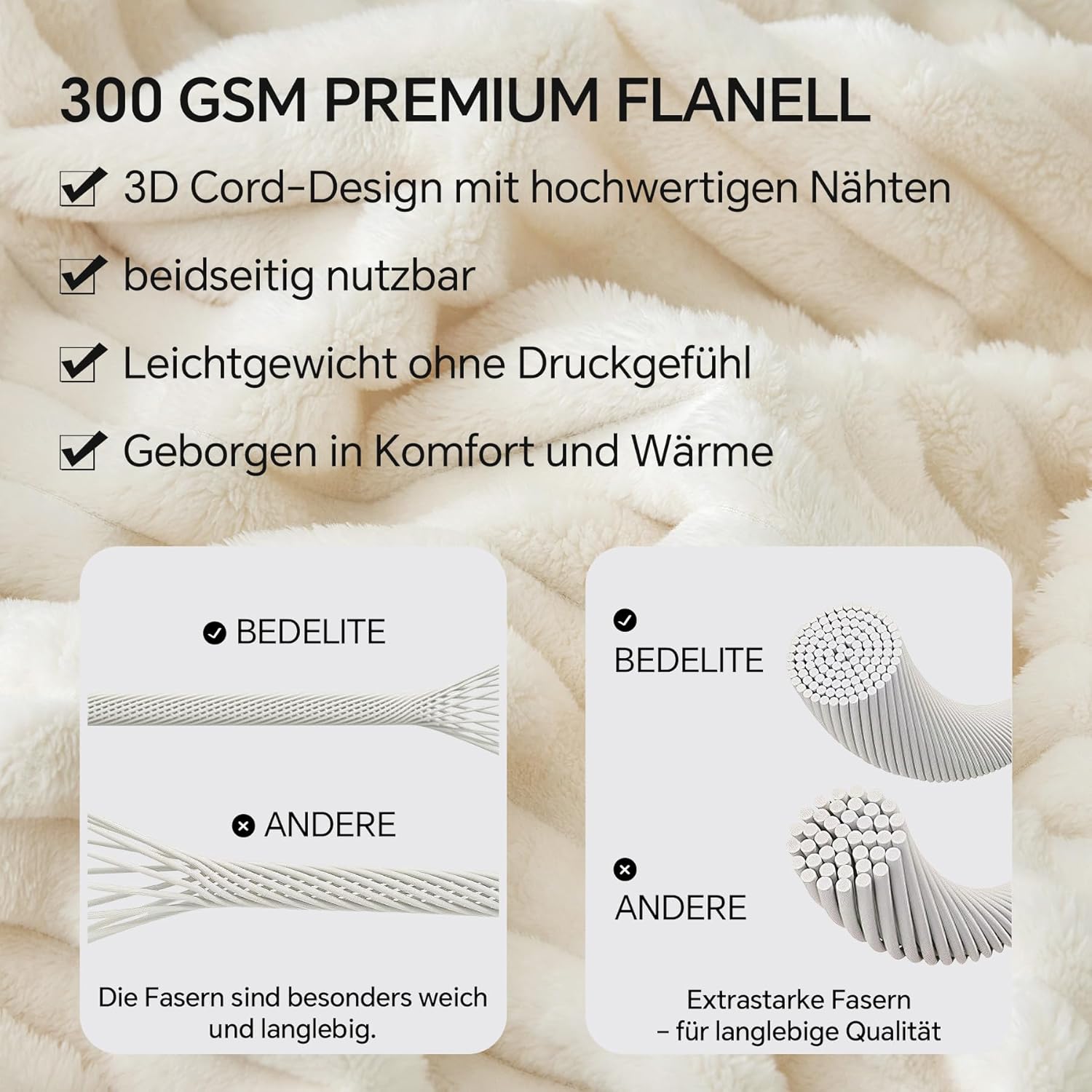 Пухкаво одеяло BEDELITE, малко - меки фланелени одеяла, цвят слонова кост, 125 x 150 см за диван, декоративни райета, поларено одеяло, бяло, като покривало за диван за хол, одеяло с широка употреба