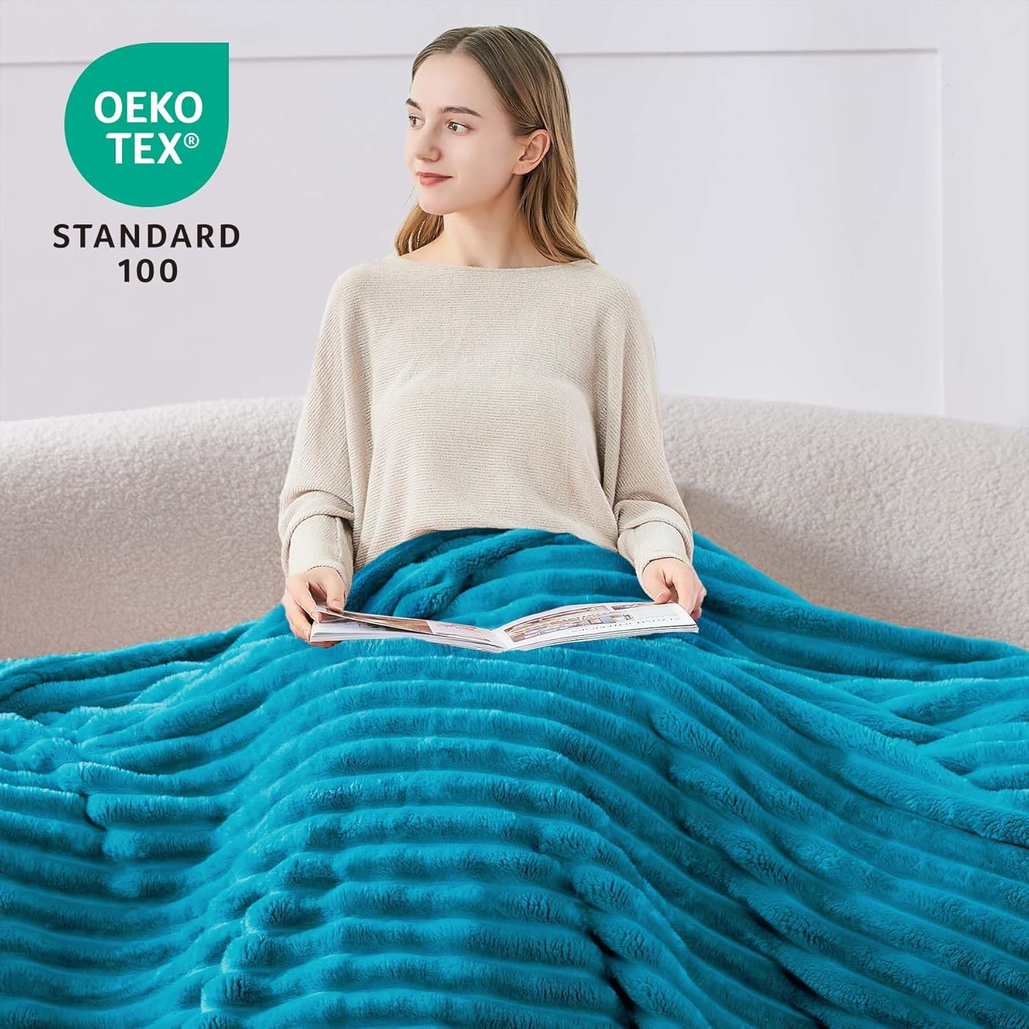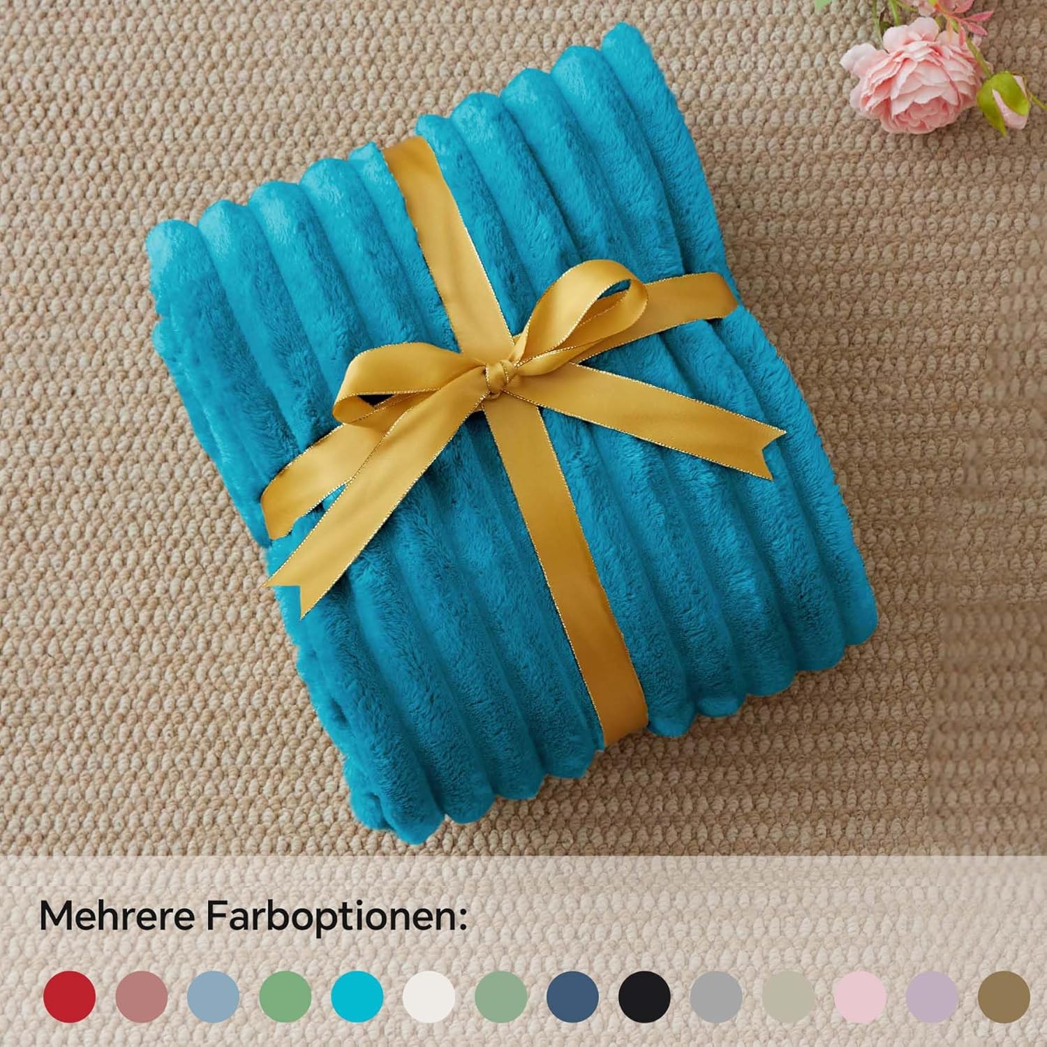 Пухкаво одеяло BEDELITE, малко, меко, тюркоазено, 125 x 150 см за диван, декоративни райета, поларено одеяло за диван за хол, широко приложение