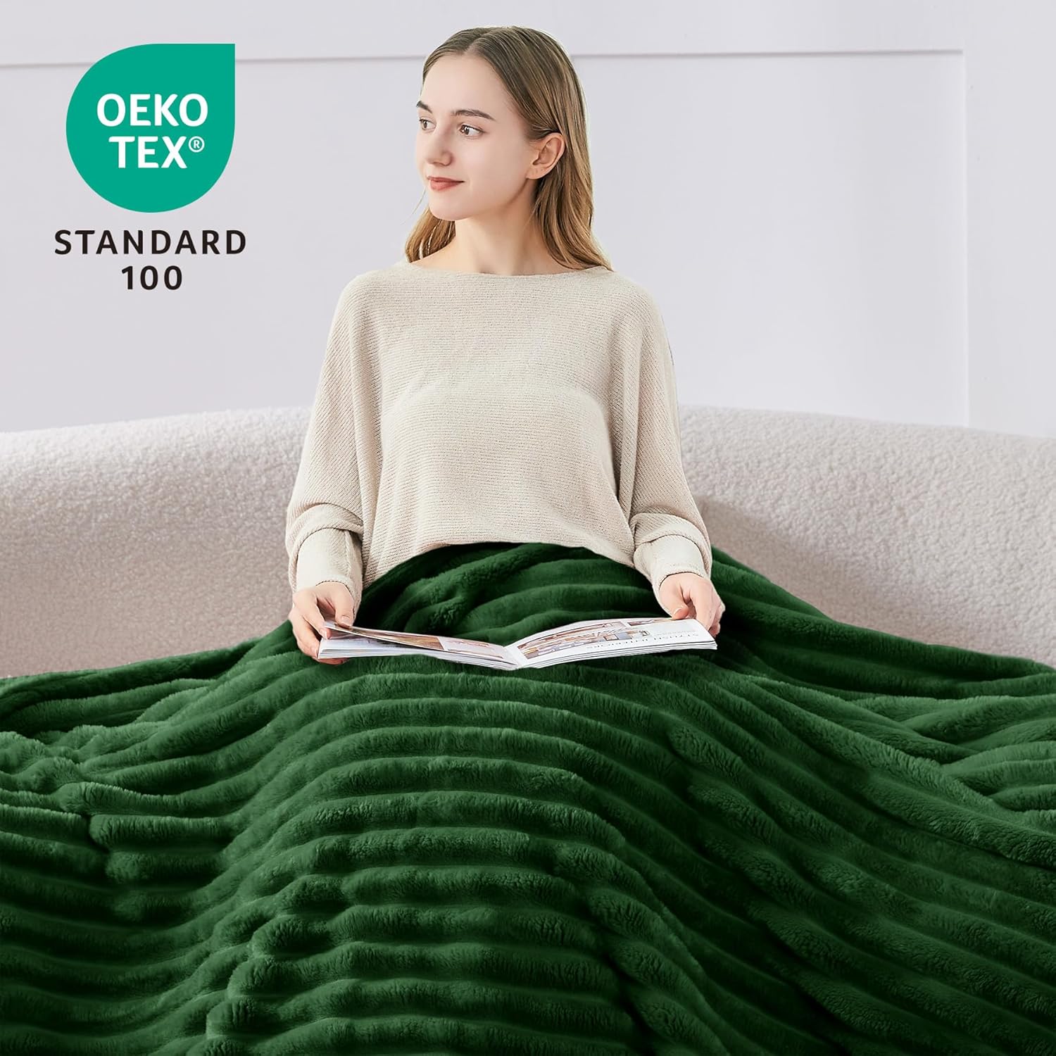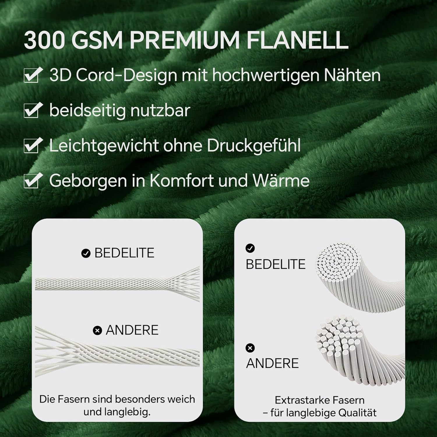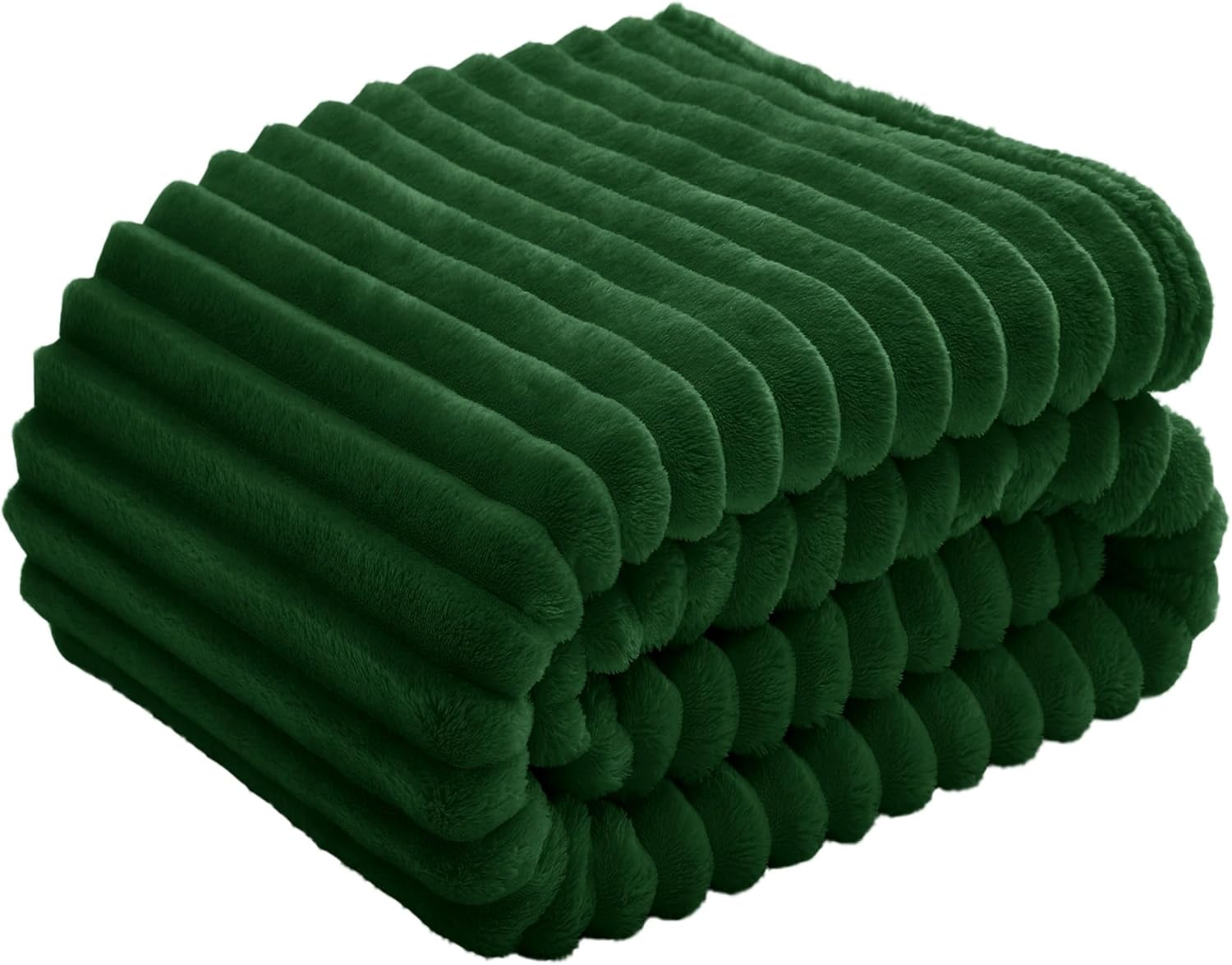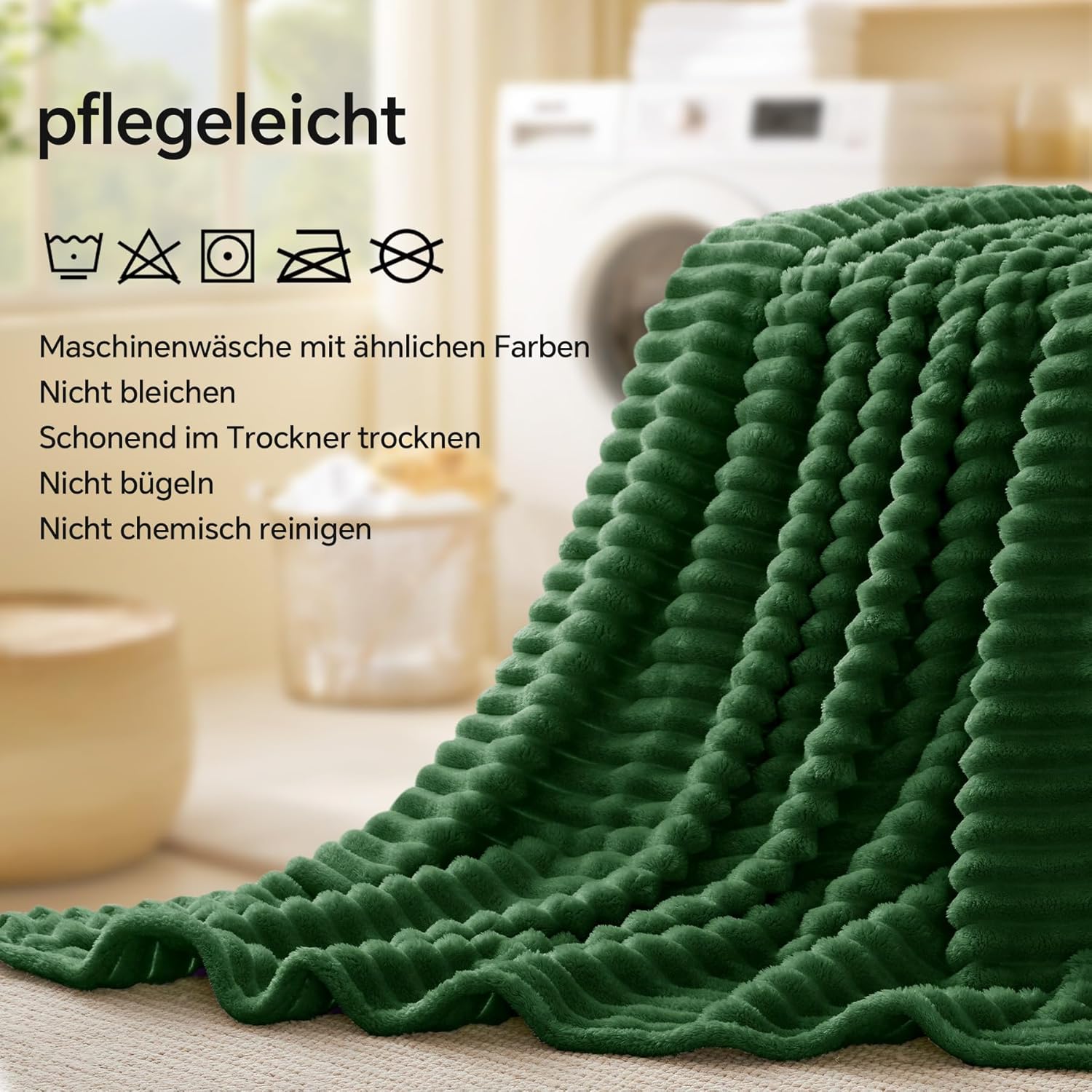 Пухкаво одеяло BEDELITE, малко, меко, зелено, 125 x 150 см за диван, декоративни райета, поларено одеяло, тъмнозелено, като покривало за диван за хол, одеяло с широка употреба