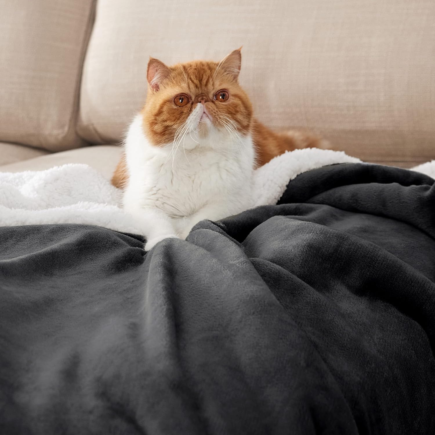 Пухкаво одеяло BEDSURE - Топло одеяло от шерпа вълна и одеяло за диван, Пухкаво одеяло за диван, Дебело одеяло за диван, Поларено одеяло, Пухкаво одеяло за диван, Антрацит, 220 x 240 см, XXL