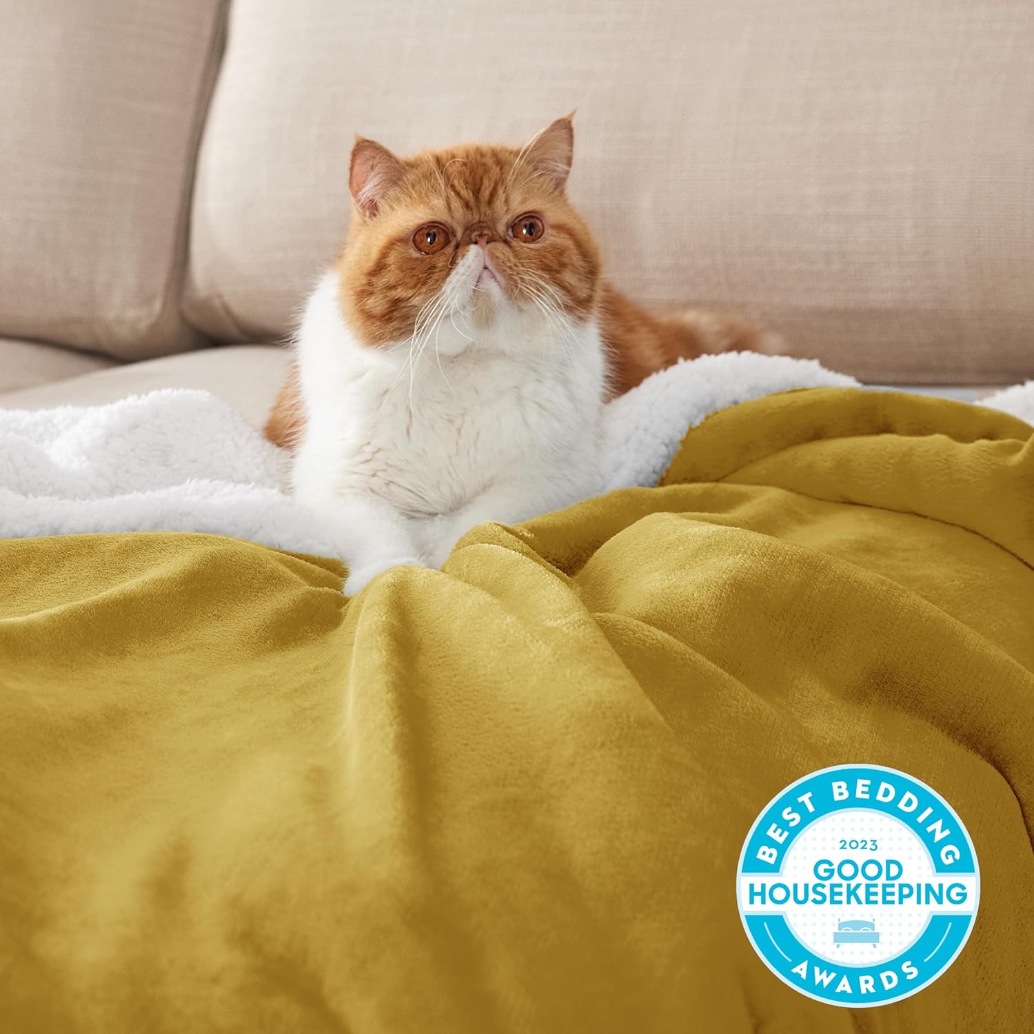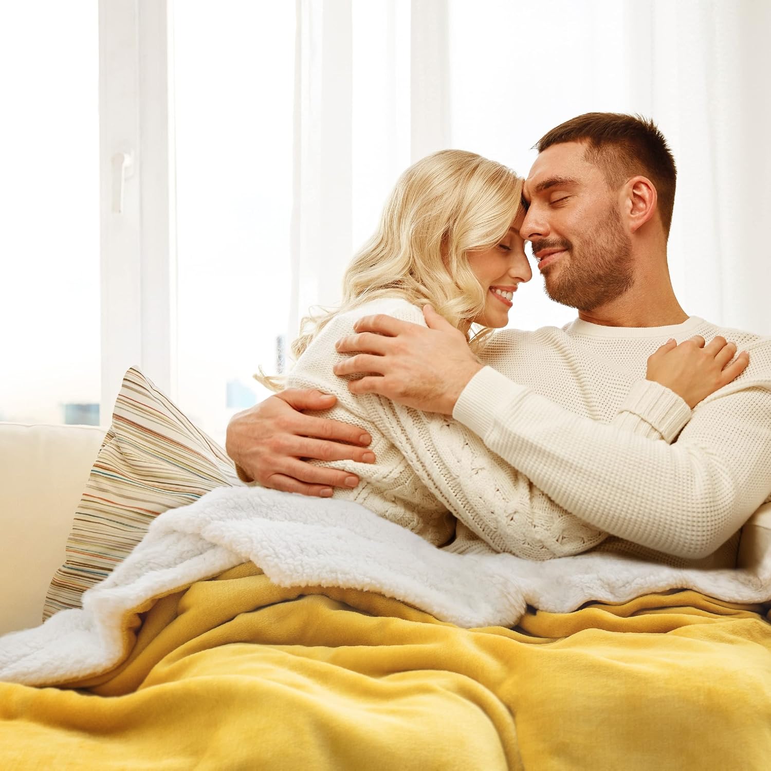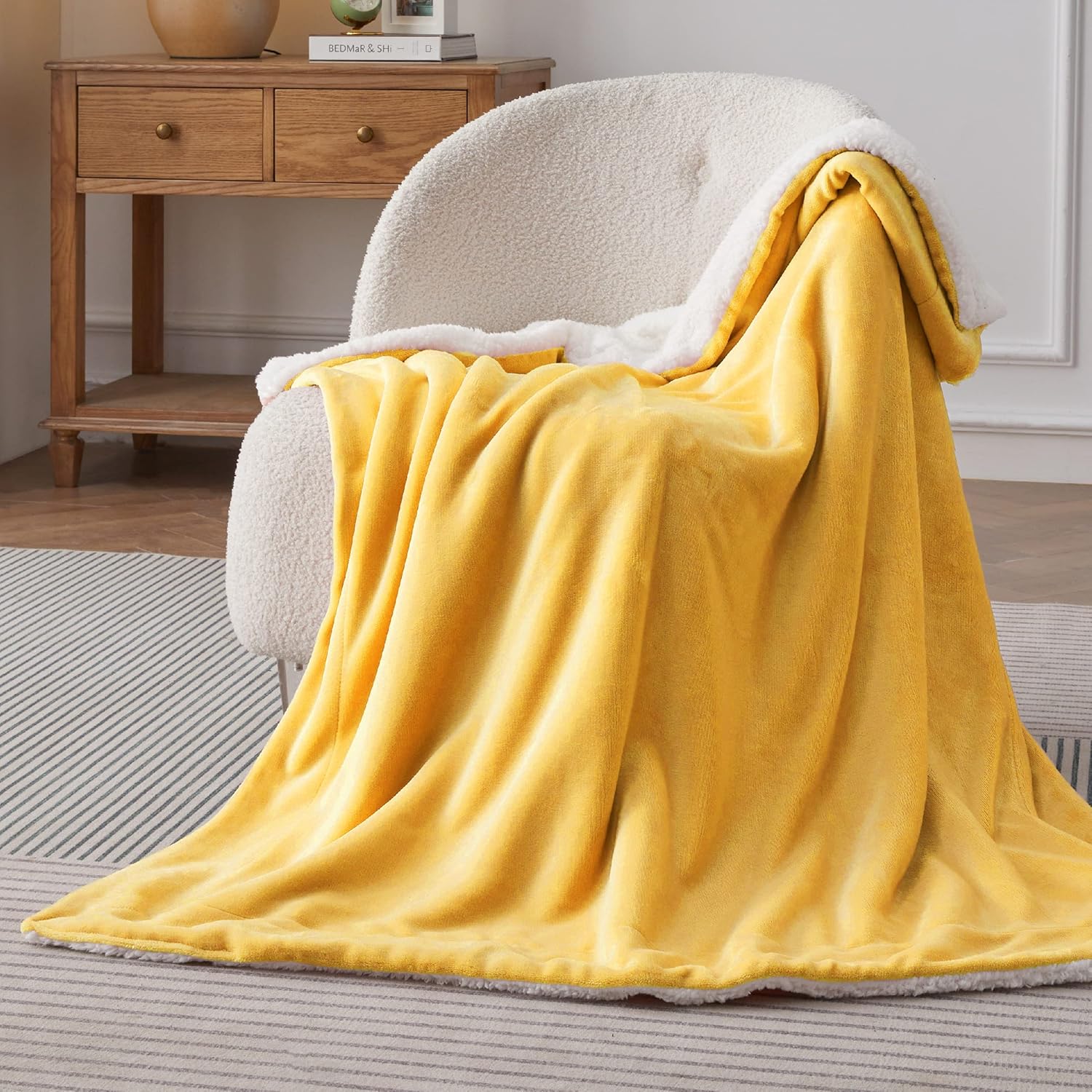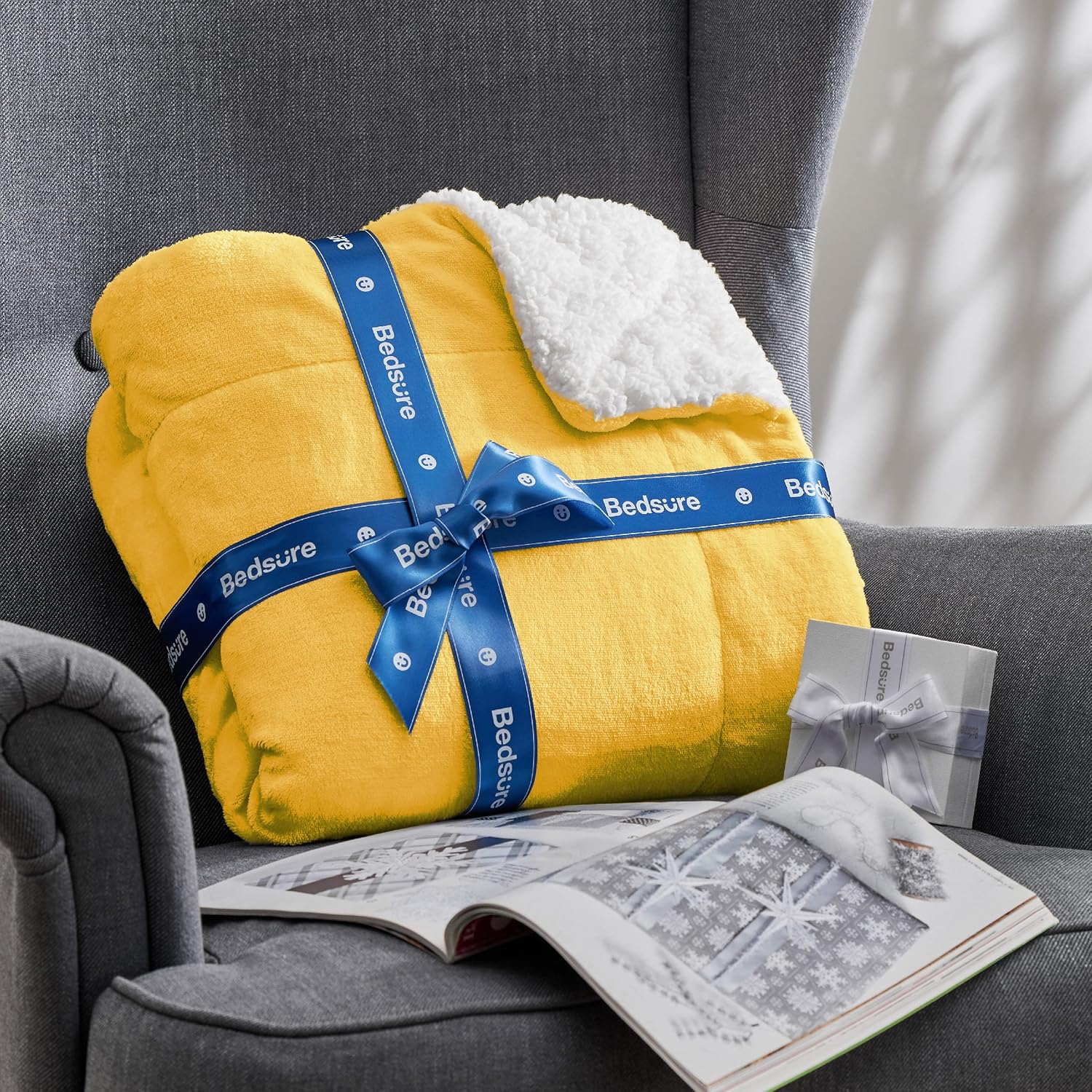 Пухкаво одеяло BEDSURE - Топло одеяло от шерпа вълна и одеяло за диван, Пухкаво одеяло за диван, Дебело одеяло за диван, Поларено одеяло, Пухкаво одеяло за диван, Жълто, 130 x 150 см