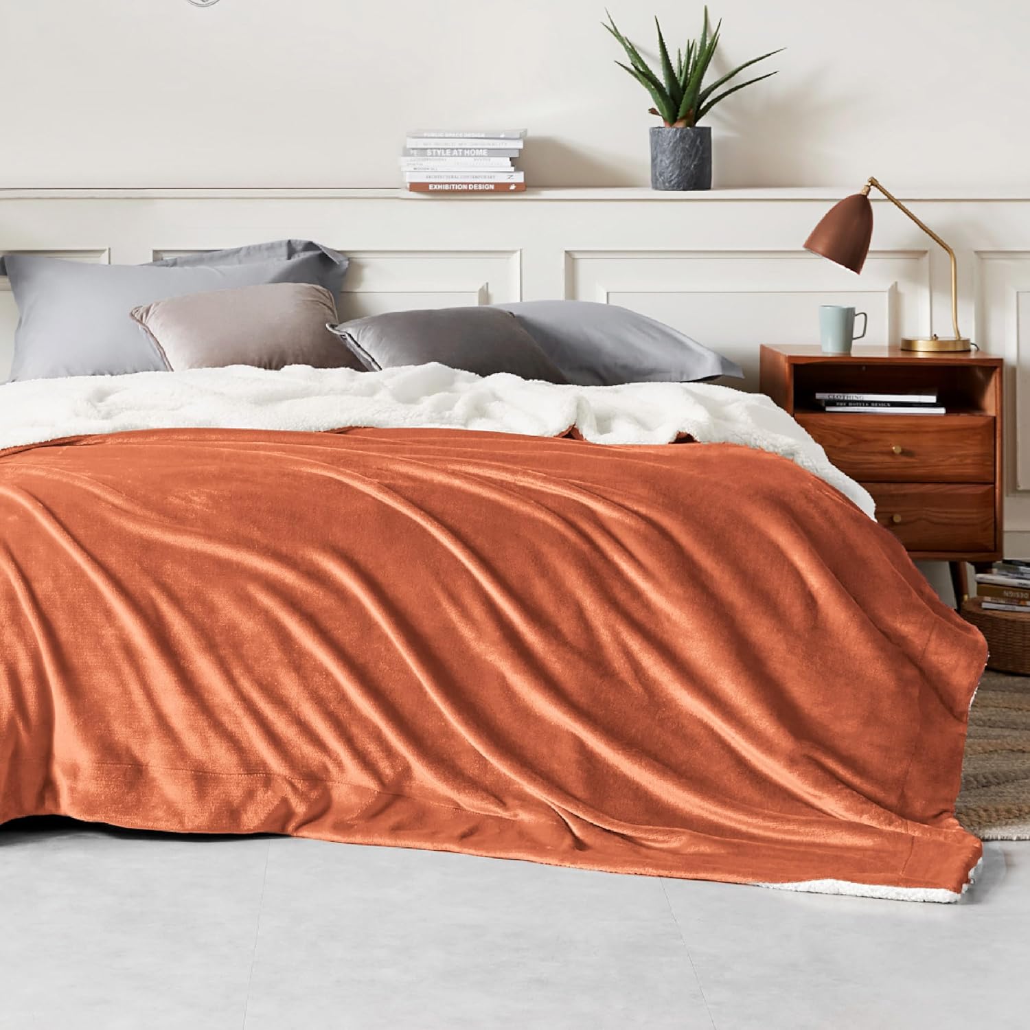 Пухкаво одеяло BEDSURE - Топло одеяло от шерпа вълна и одеяло за диван, Пухкаво одеяло за диван, Дебело одеяло за диван, Поларено одеяло, Пухкаво одеяло за диван, Оранжево, 230 x 270 см
