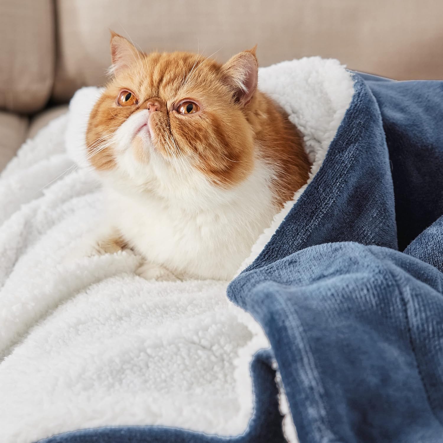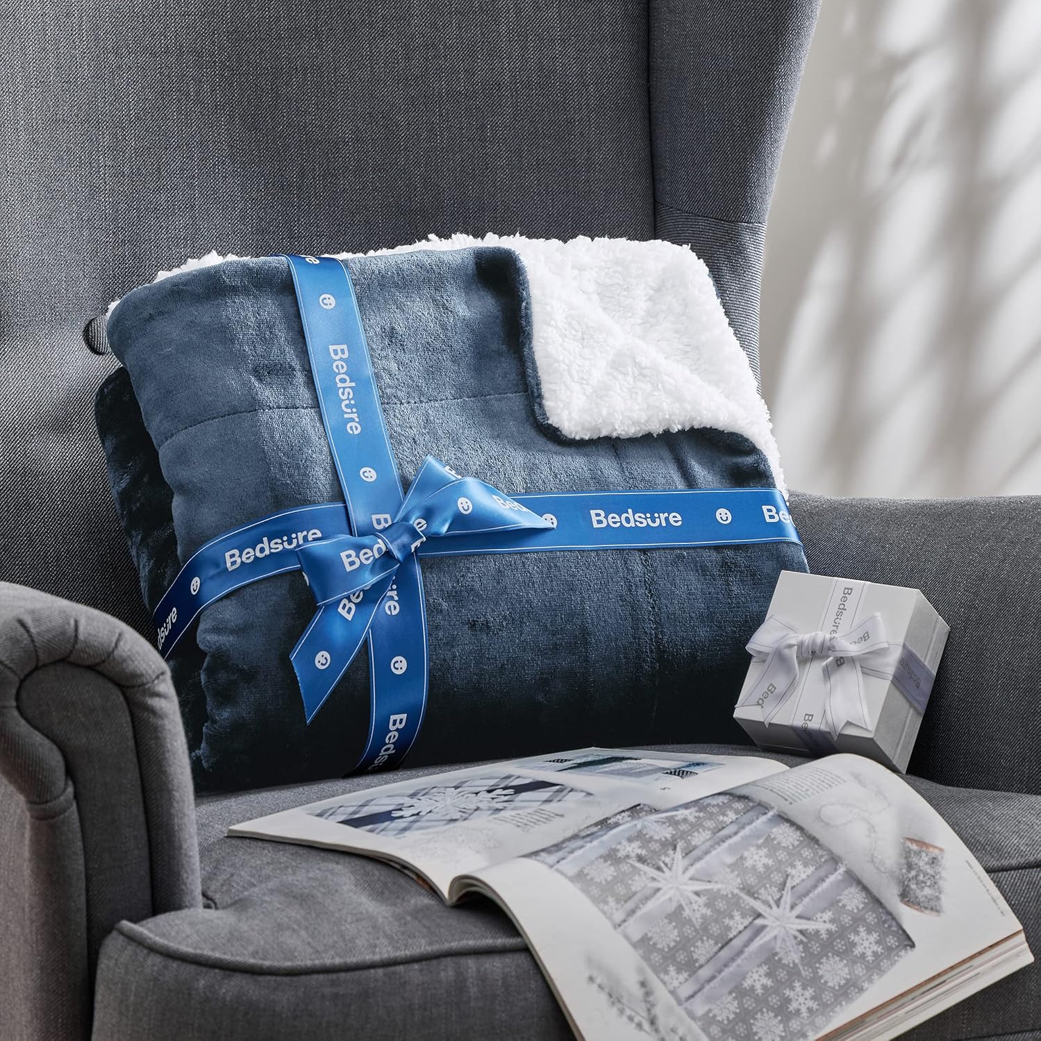 Пухкаво одеяло BEDSURE - Топло одеяло от шерпа вълна и одеяло за диван, Пухкаво одеяло за диван, Дебело одеяло за диван, Поларено одеяло, Пухкаво одеяло за диван, Шиферно синьо, 220 x 240 см, XXL