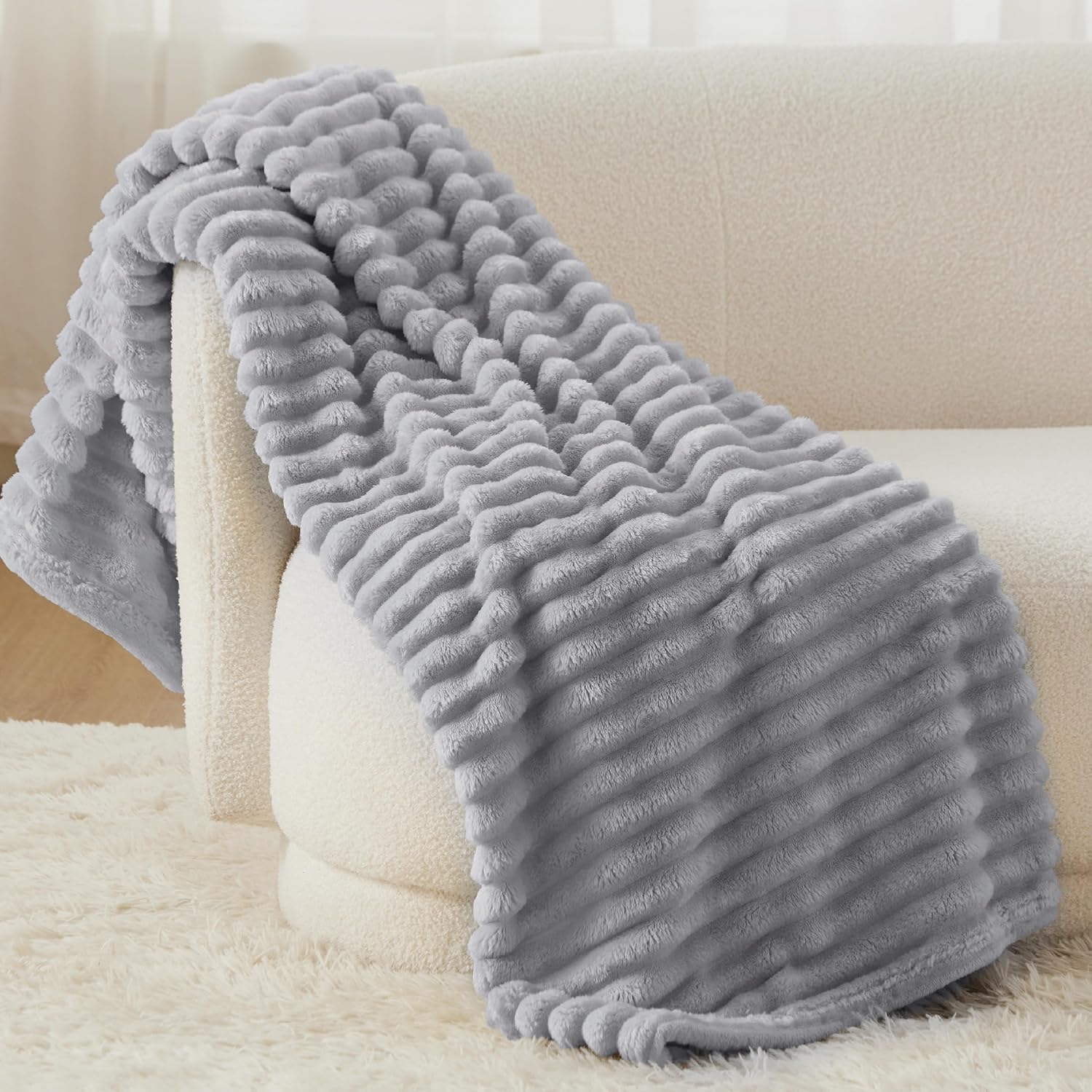 Пухкаво одеяло BEDSURE - Вълнено одеяло и полар, Одеяло за диван, Меко топло одеяло с дебел шнур, Уютно покривало за декорация на стая, Одеяла за хол и пухкави одеяла, Кувертюра за легло, Светло сиво, 130 x 170
