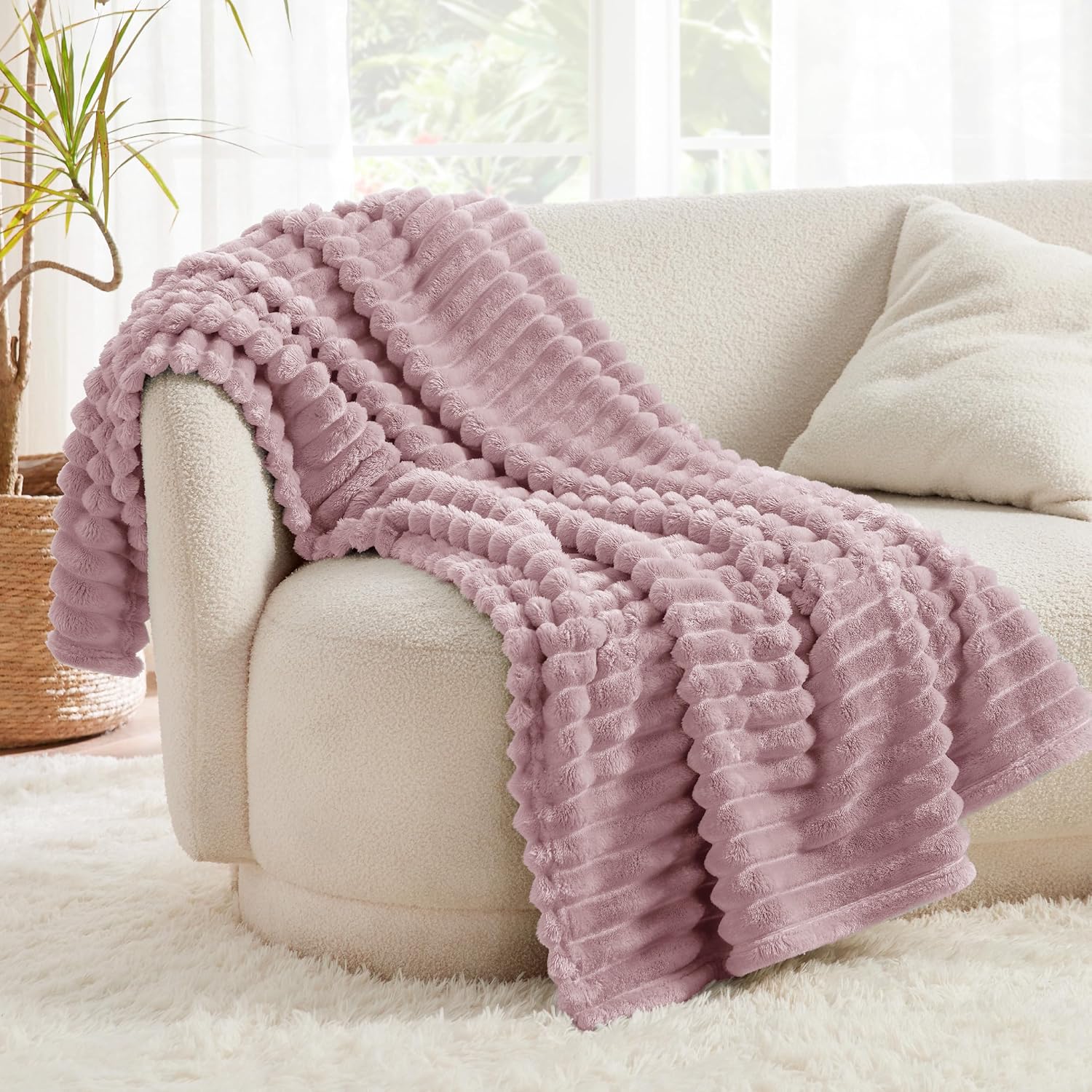 Пухкаво одеяло BEDSURE - Вълнено одеяло и полар, Одеяло за диван, Меко топло одеяло с дебел шнур за декорация на стая, Одеяла за хол и пухкави одеяла, Кувертюра, Розово, 150 x 200 см