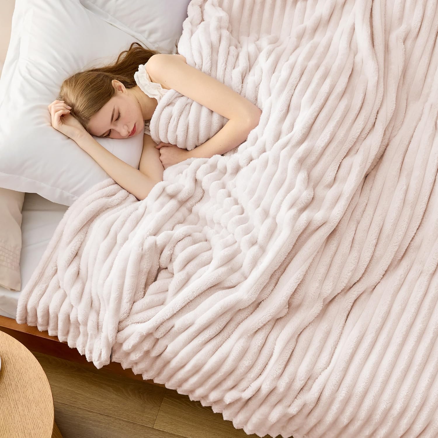 Пухкаво одеяло BEDSURE - Вълнено одеяло и полар, Одеяло за диван, Меко топло одеяло с дебел шнур за декорация на стая, Одеяла за хол и пухкави одеяла, Кувертюра за легло, Голямо одеяло, Кристално розово, 230 x