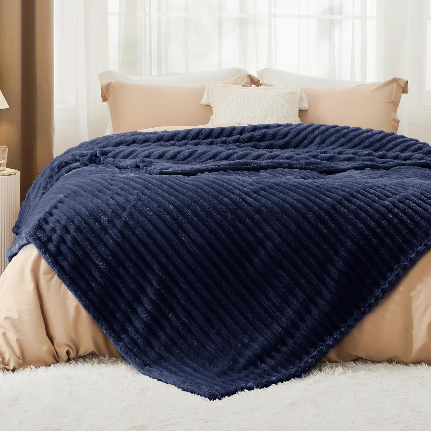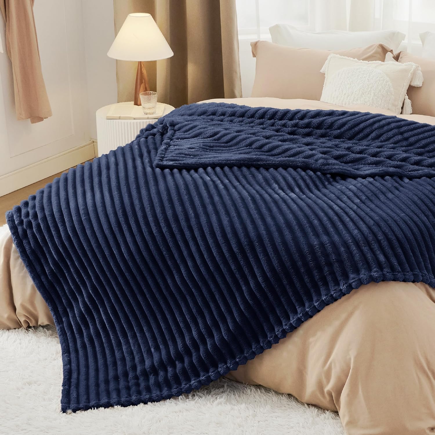 Пухкаво одеяло BEDSURE - Вълнено одеяло и полар, Одеяло за диван, Меко топло одеяло с дебел шнур за декорация на стая, Одеяла за хол и пухкави одеяла, Кувертюра за легло, Голямо одеяло, Синьо, 230 x 270 см