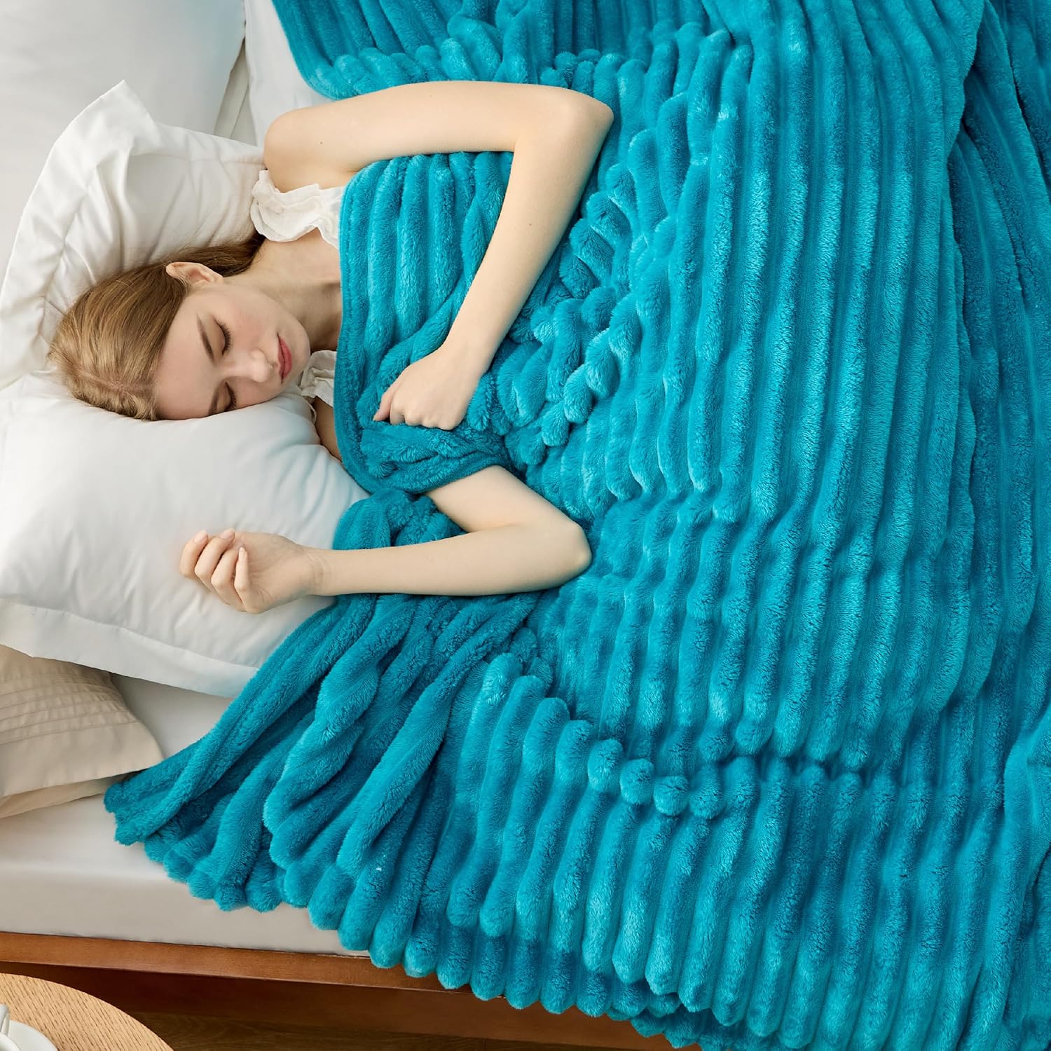Пухкаво одеяло BEDSURE - Вълнено одеяло и полар, Одеяло за диван, Меко топло одеяло с дебел шнур за декорация на стая, Одеяла за хол и пухкави одеяла, Кувертюра за легло, Голямо одеяло, Синьо-зелено, 230 x 270 см