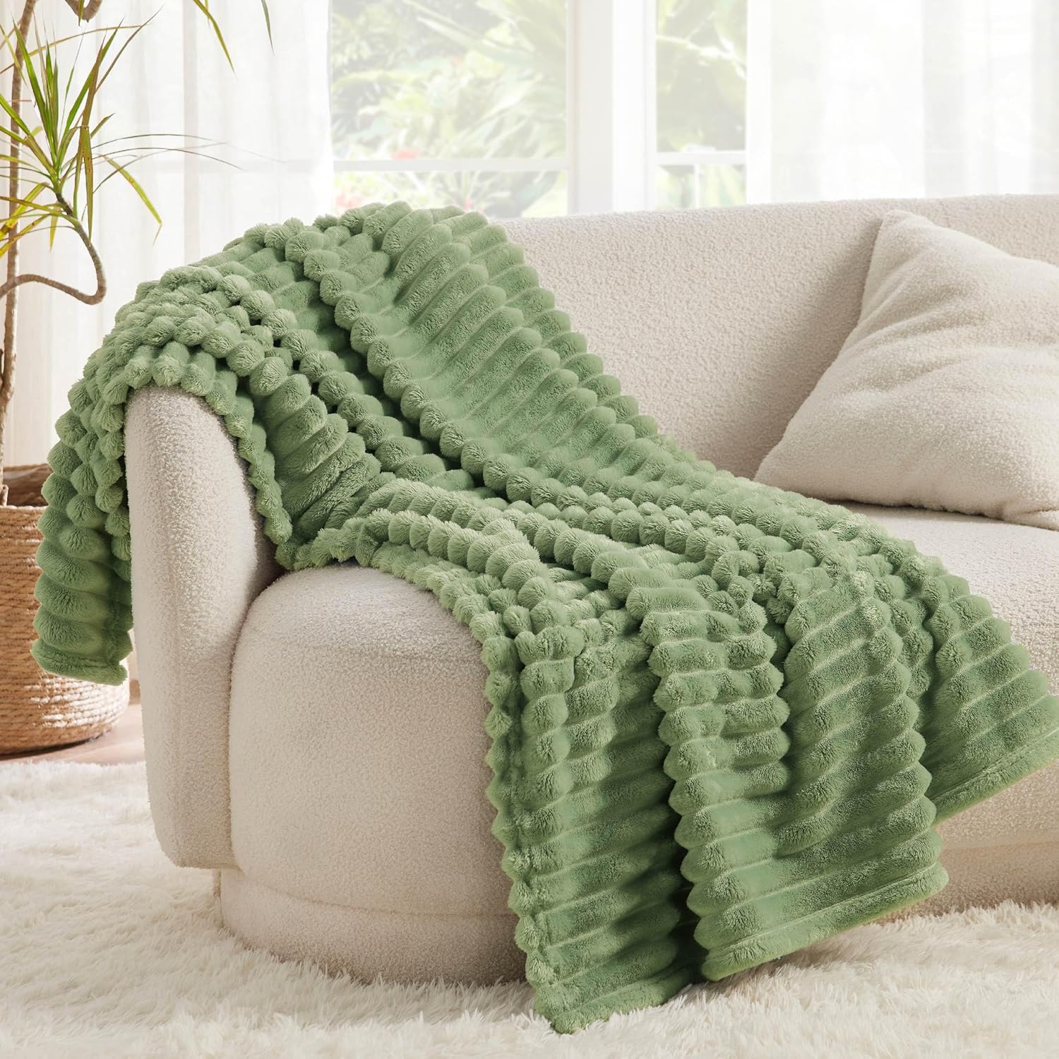 Пухкаво одеяло BEDSURE - Вълнено одеяло и полар, Одеяло за диван, Меко топло одеяло с дебел шнур за декорация на стая, Одеяла за хол и пухкави одеяла, Кувертюра за легло, Резеда, 150 x 200 см