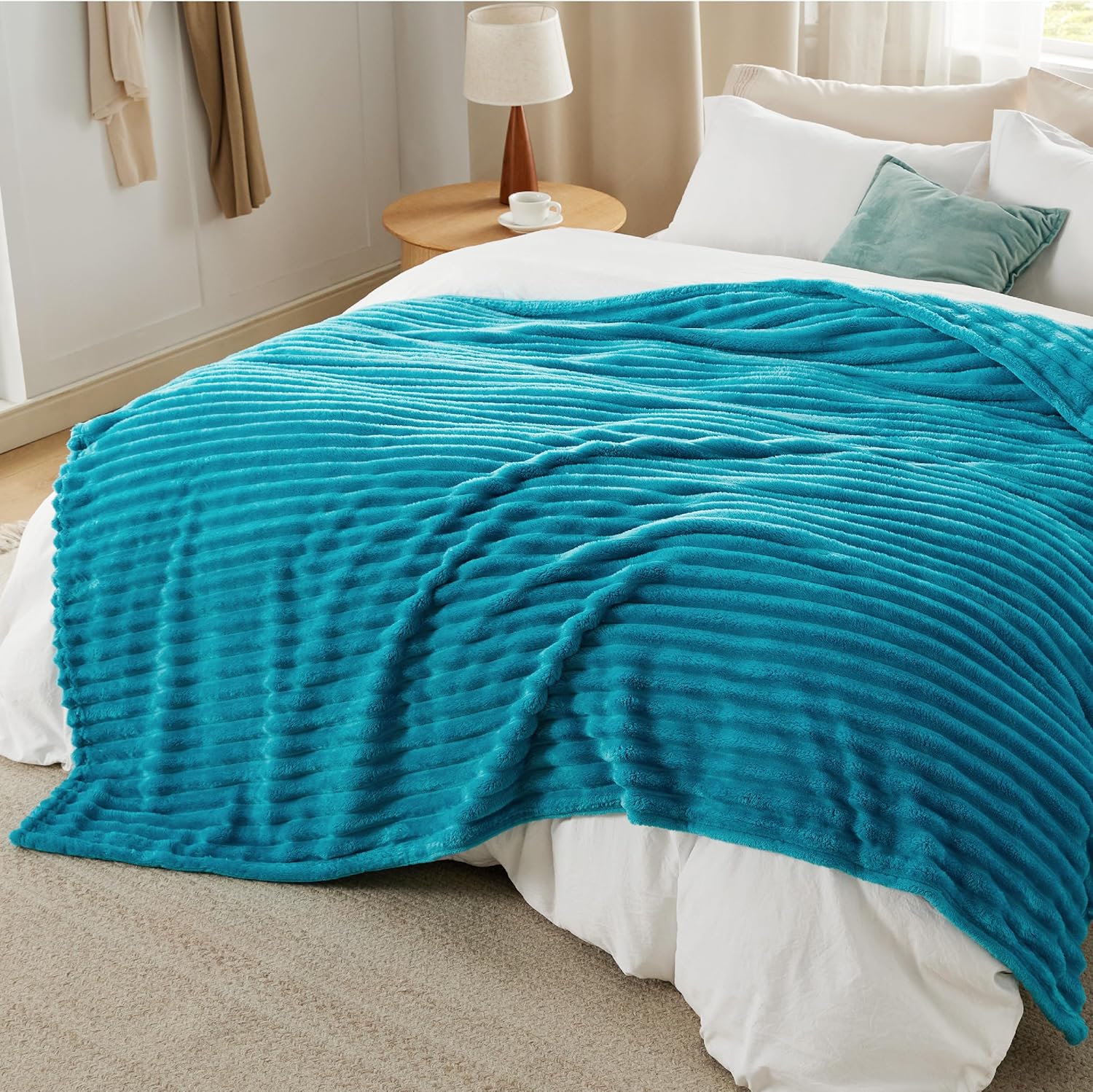 Пухкаво одеяло BEDSURE 220 x 240 см - Кувертюра за легло, Вълнено одеяло и Поларно одеяло, Одеяло за диван, Меко топло одеяло с дебел шнур за декорация на стая, Одеяла за хол и пухкави одеяла, XXL голямо одеяло, Синьо-зелено, 220