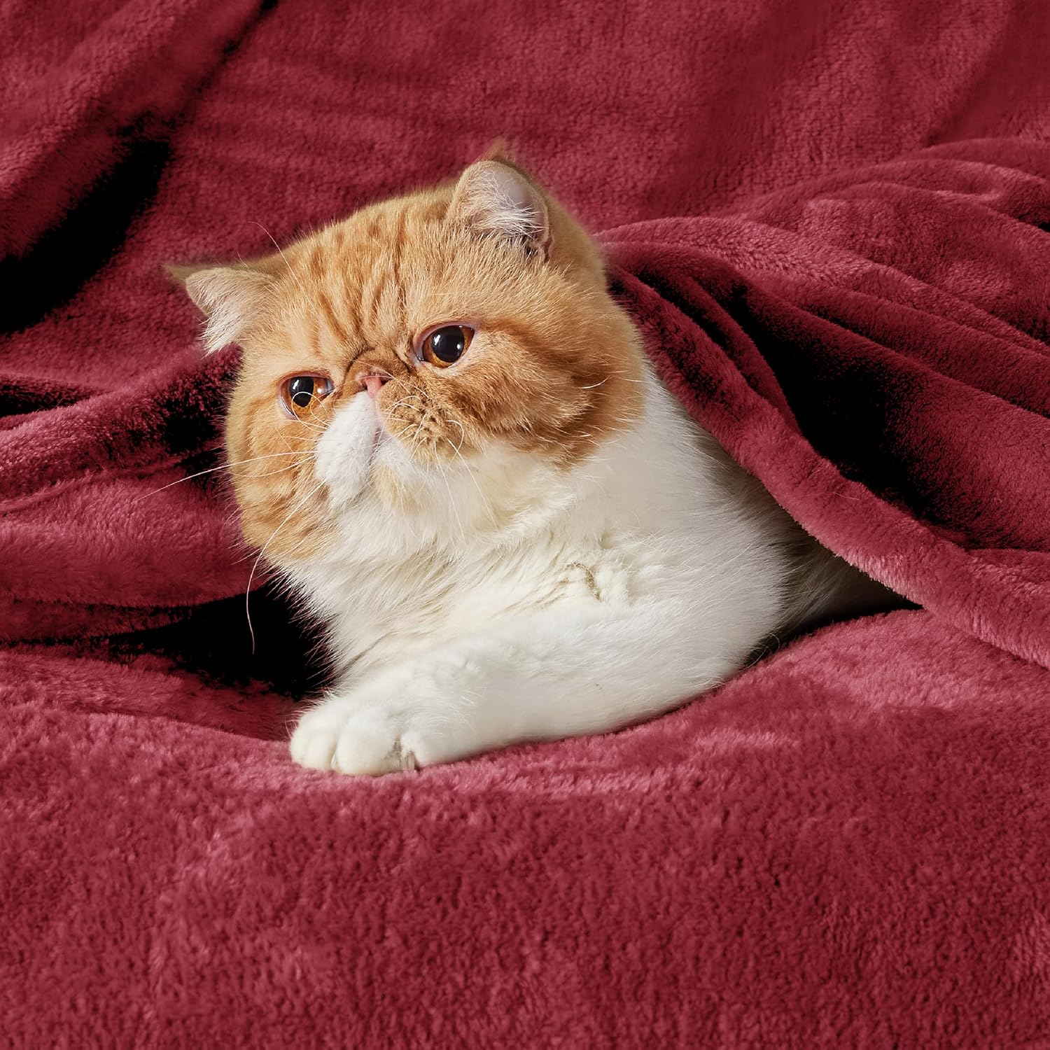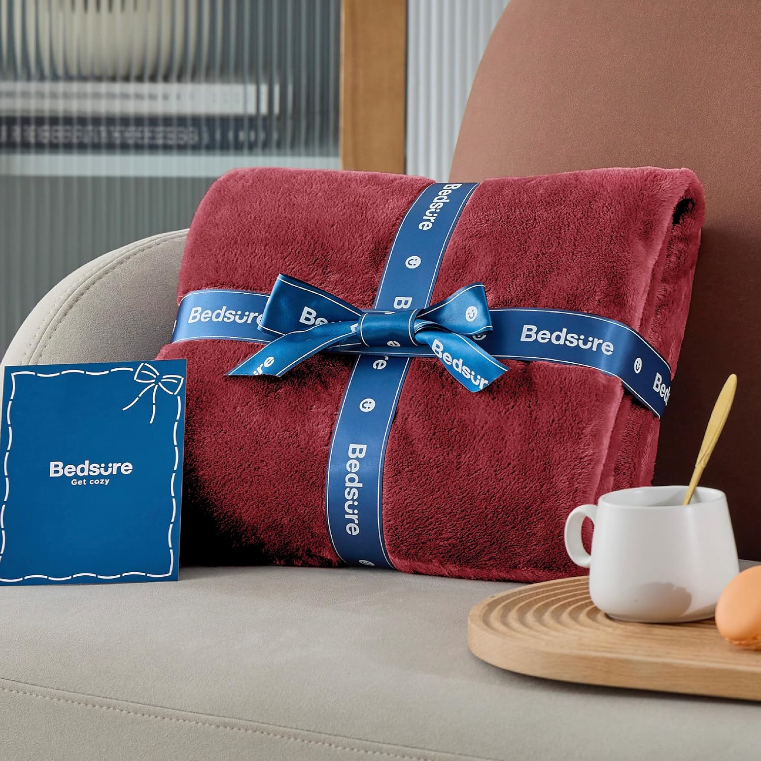 Пухкаво поларено одеяло BEDSURE, топло зимно/меко одеяло за диван, малко одеяло, одеяло за хол, за деца, 130 x 150 см, одеяло за диван, червено