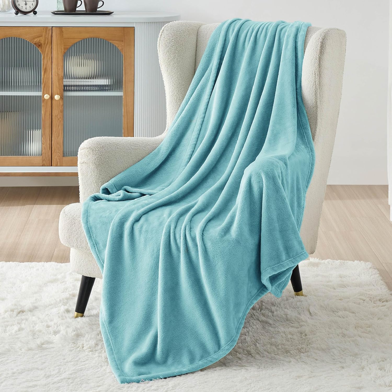 Пухкаво поларено одеяло BEDSURE, Топло зимно/меко одеяло за диван, XL одеяло, Одеяло за хол, 150 x 200 см, Одеяло за диван, Речно синьо