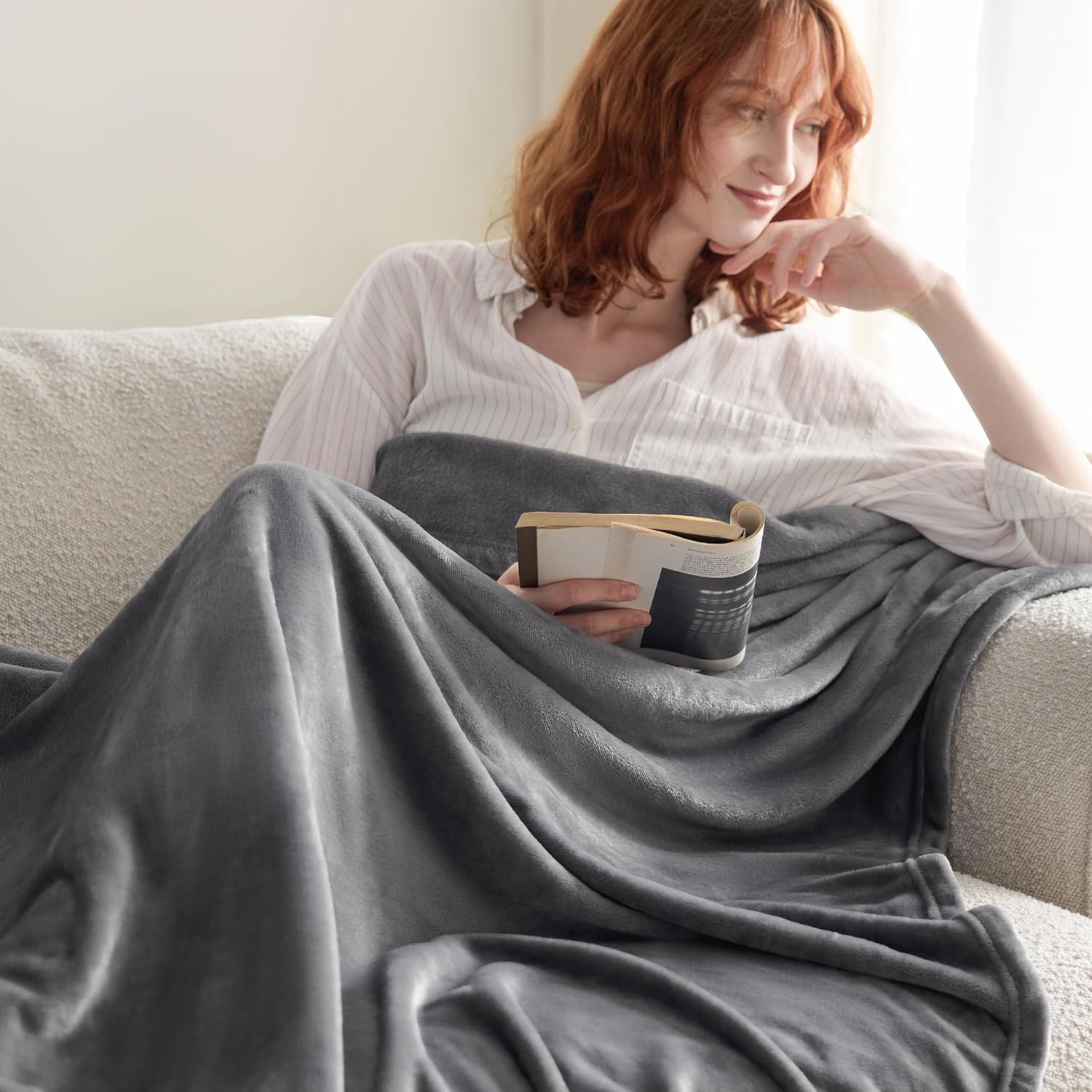 Пухкаво поларено одеяло BEDSURE, топло зимно/меко одеяло за диван, XL одеяло, одеяло за хол, 150 x 200 см, одеяло за диван, сиво
