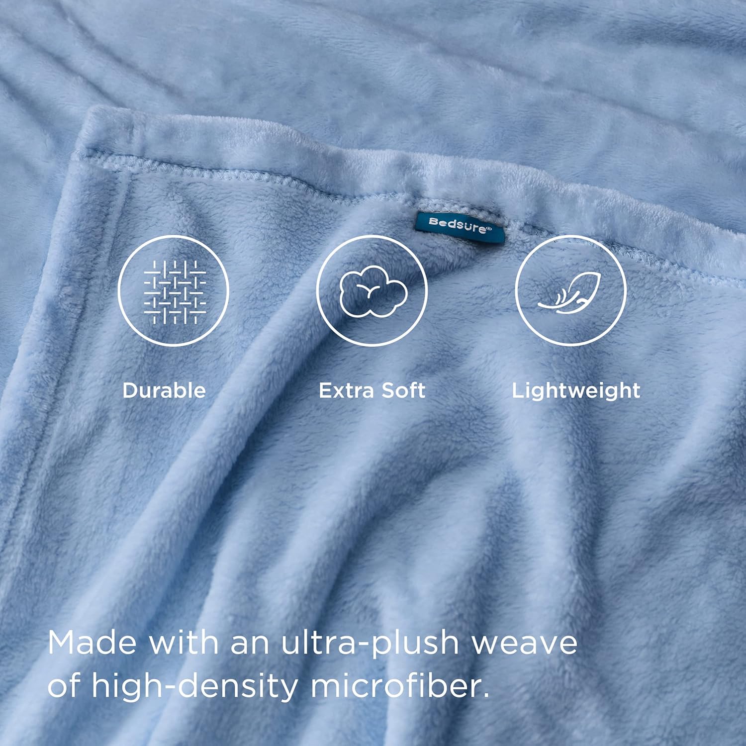Пухкаво поларено одеяло BEDSURE, топло зимно/меко одеяло за диван, XL одеяло, одеяло за хол, 150 x 200 см, одеяло за диван, светлосиньо