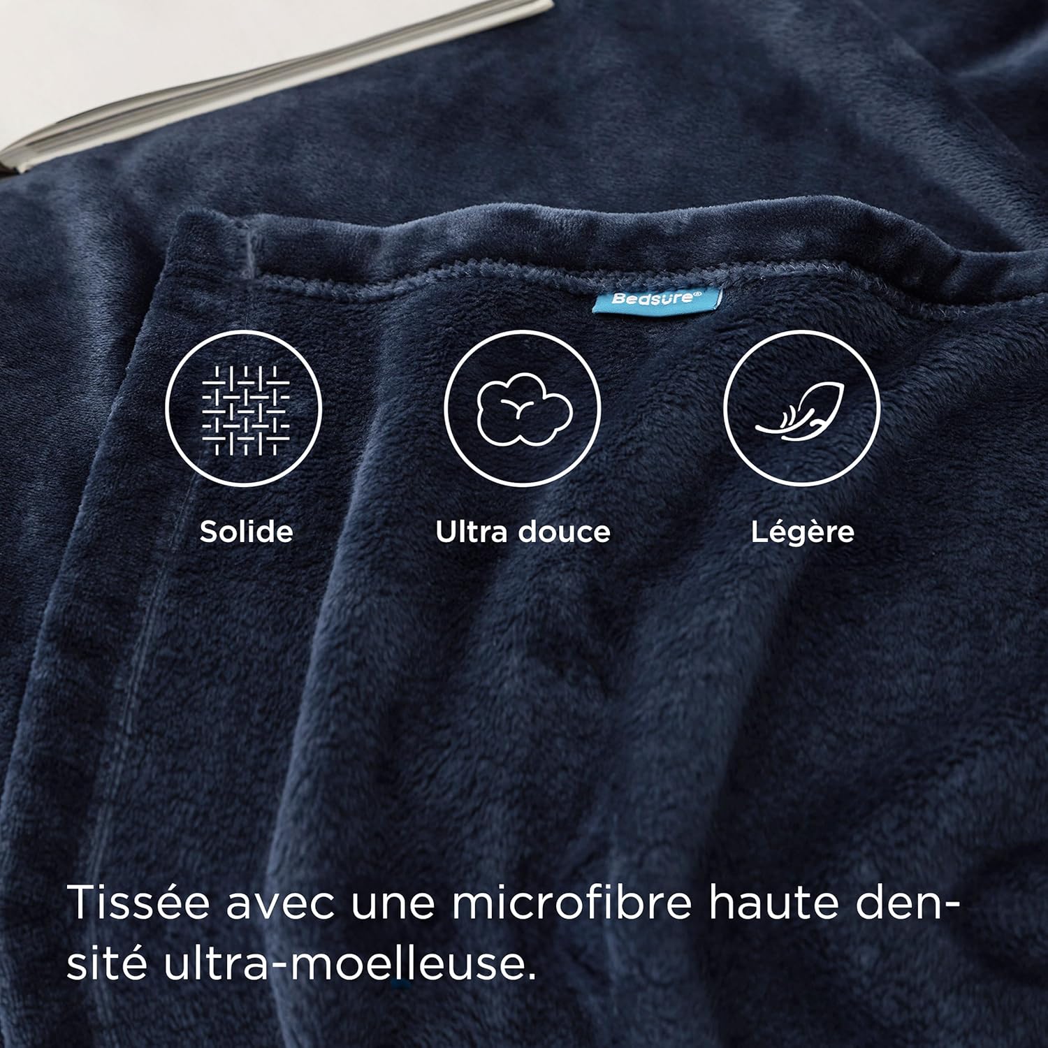 Пухкаво поларено одеяло BEDSURE, топло зимно/меко одеяло за диван, XL одеяло, одеяло за хол, 150 x 200 см, одеяло за диван, тъмносиньо
