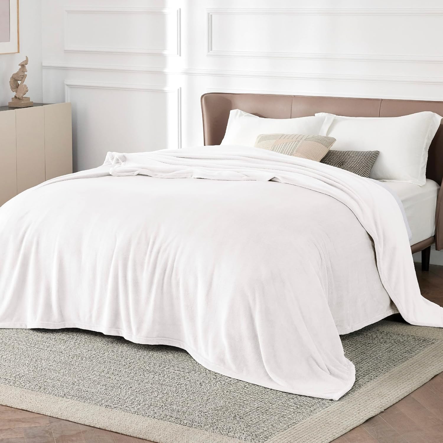 Пухкаво поларено одеяло BEDSURE, Топло зимно/меко одеяло за диван, XXL одеяло, Гушко одеяло, Голямо, Одеяло за хол, 230 x 270 см, Одеяло за диван, Бяло