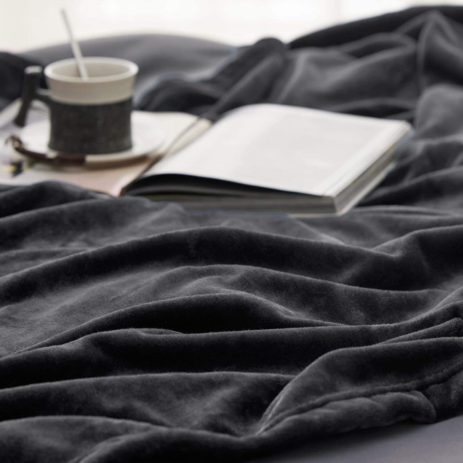 Пухкаво поларено одеяло BEDSURE, топло зимно/меко одеяло за диван, XXL одеяло, одеяло за хол, голямо, 220 x 240 см, одеяло за диван, тъмносиво