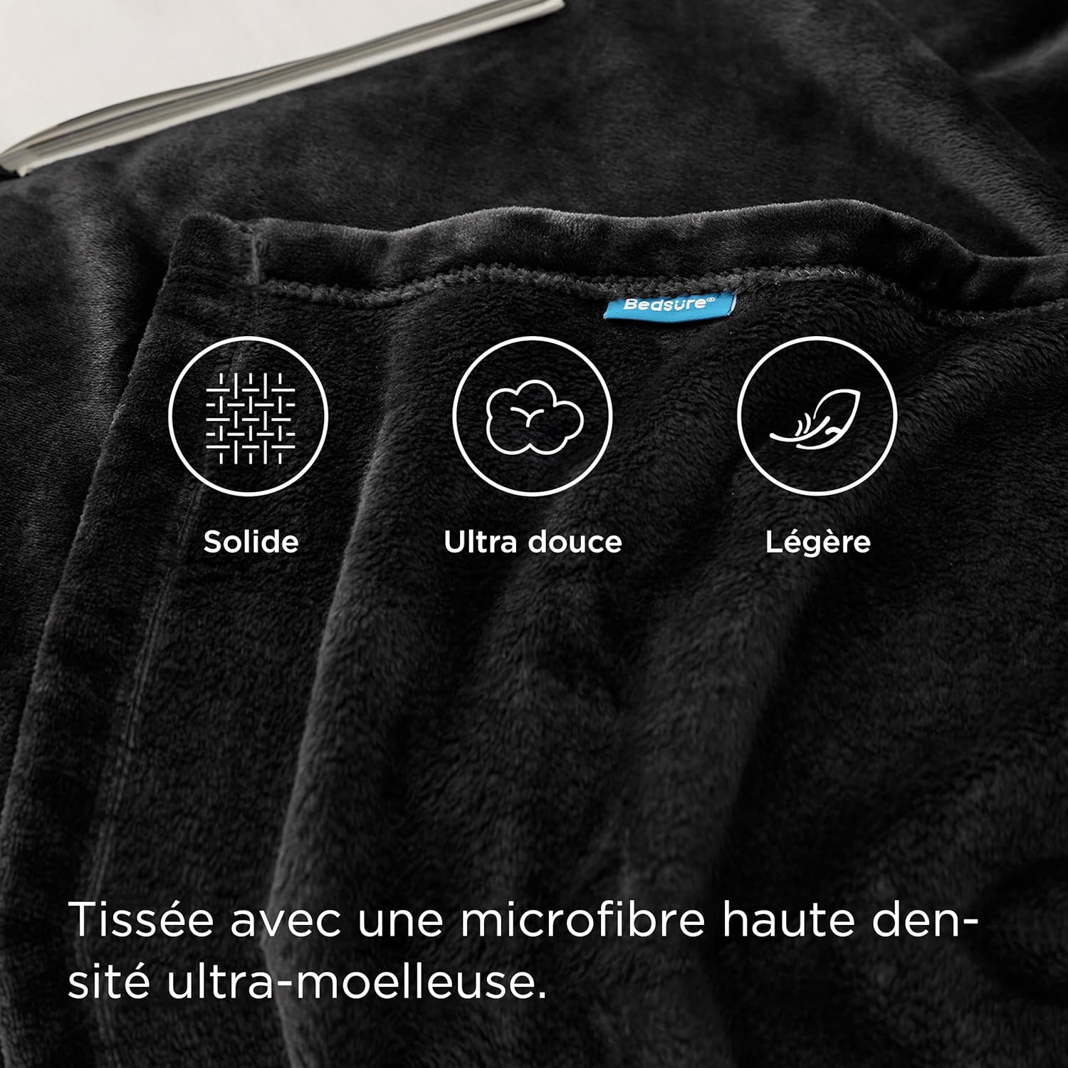 Пухкаво поларено одеяло BEDSURE, топло зимно/меко одеяло за диван, XXL одеяло, одеяло за хол, голямо, 230 x 270 см, одеяло за диван, черно