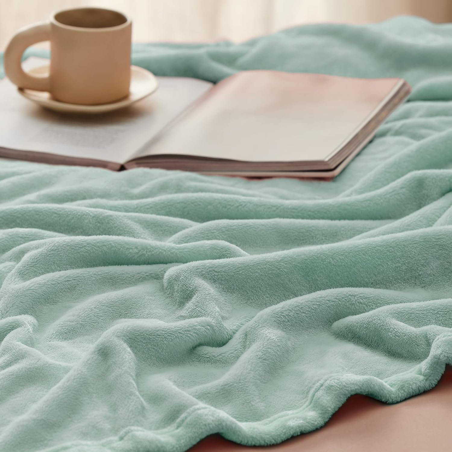 Пухкаво поларено одеяло BEDSURE, топло зимно/меко одеяло за диван, XXL одеяло, одеяло за хол, голямо, 230 x 270 см, одеяло за диван, зелено