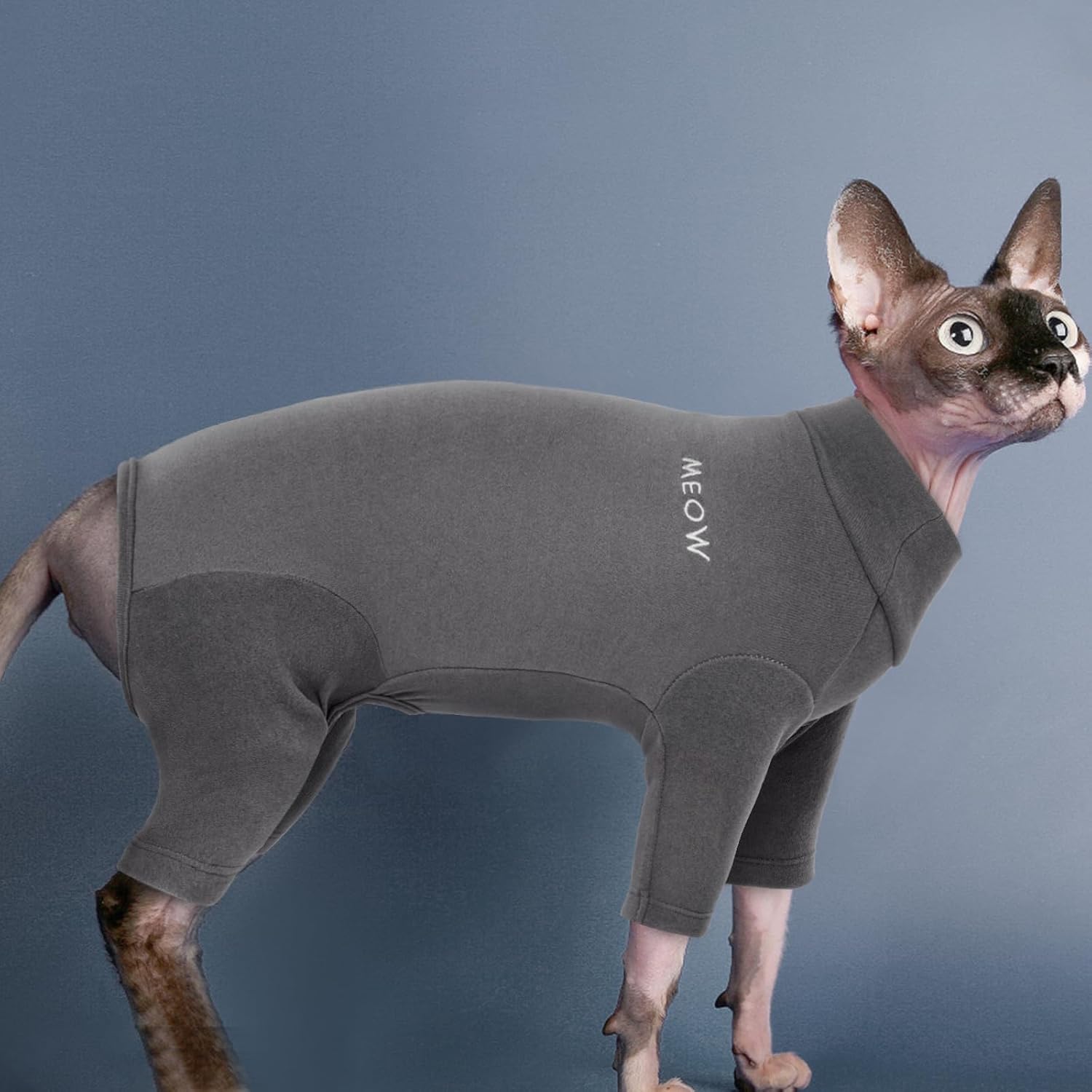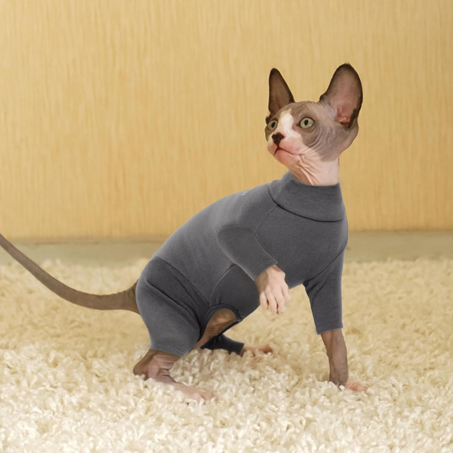 Дизайн с 4 крака – Дрехи за котки от породата Сфинкс с 4 крака и ластик под корема за перфектно прилягане.