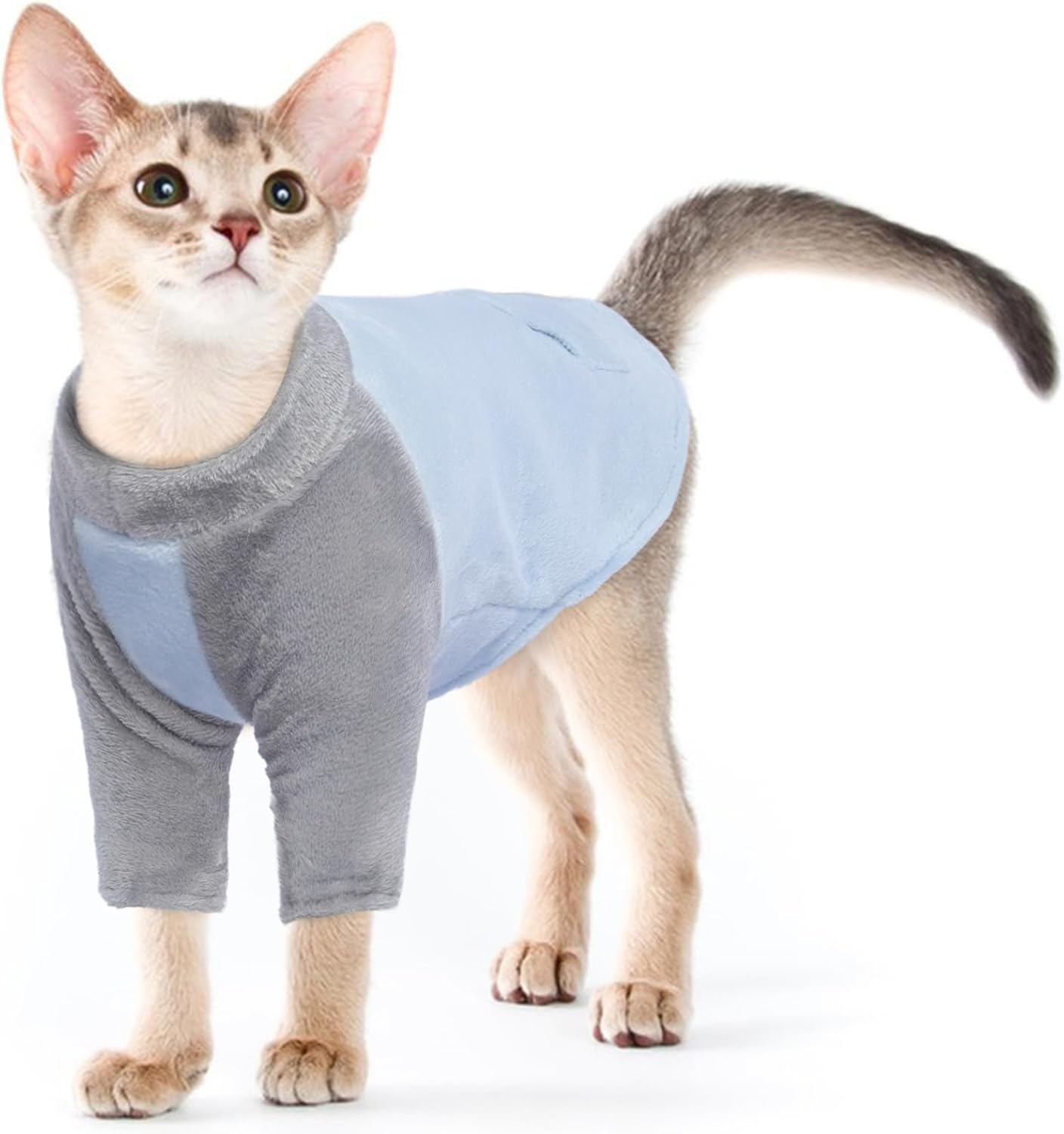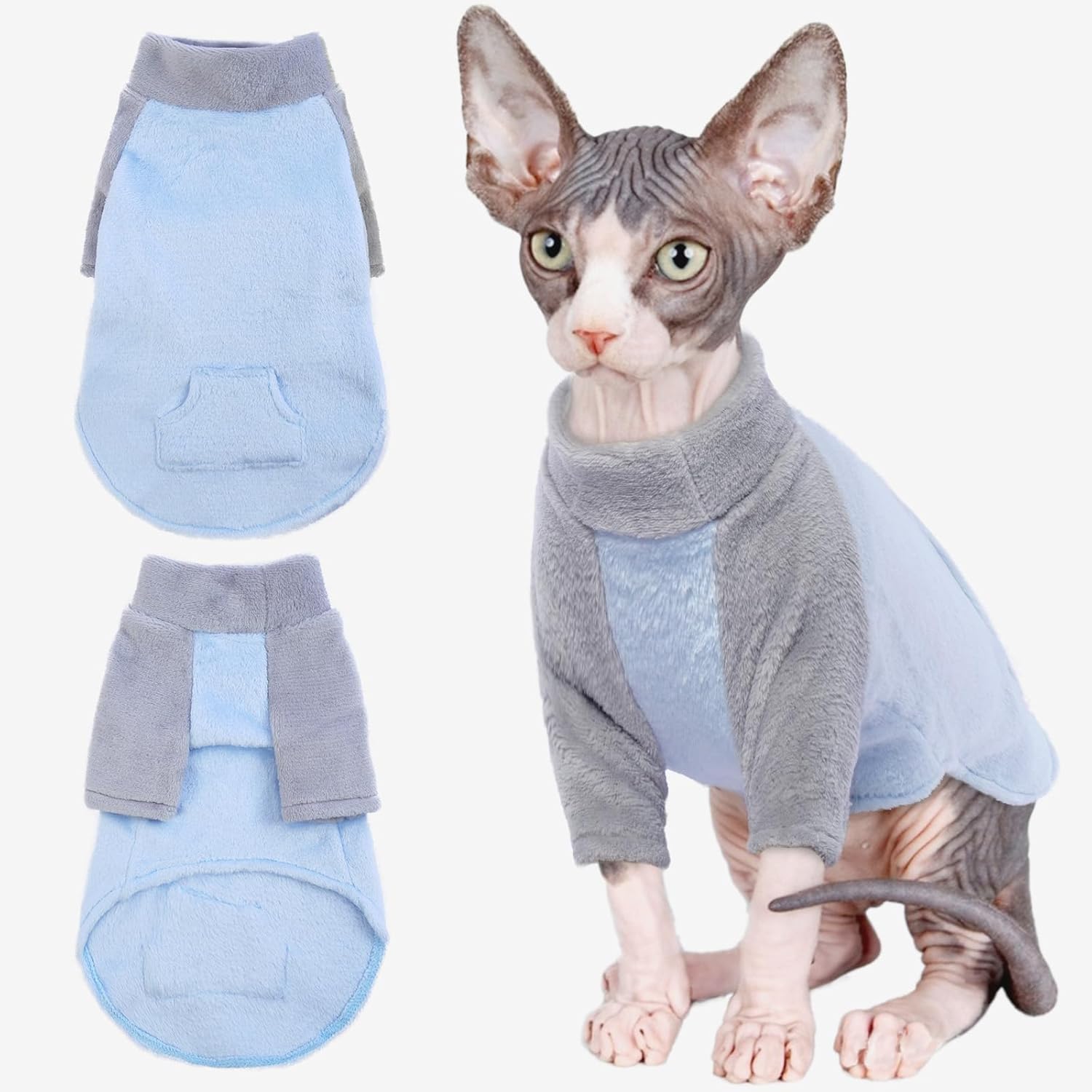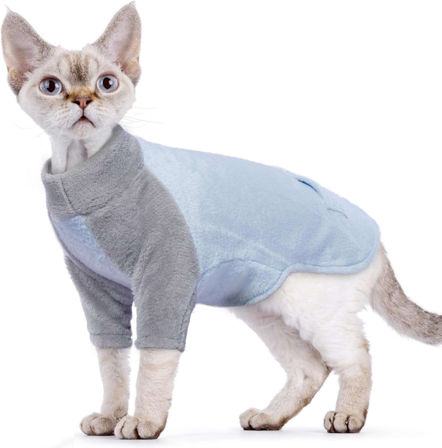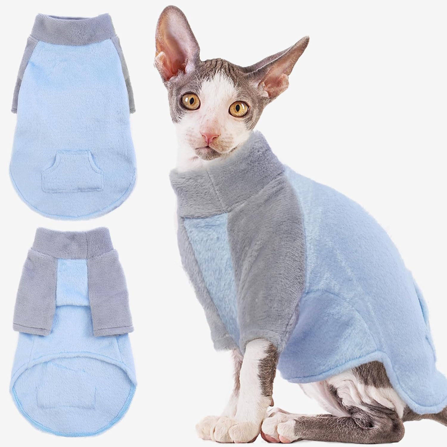 • Топло: Това облекло за котки от породата Сфинкс е дебело, меко на допир и е подходящо за носене в студено време. Пуловерът за котки напълно обгръща тялото на котката и осигурява топлина на вашия приятел. Освен това, якето за котки поддържа котките чисти и ги предпазва от наранявания по време на състезания и игра.