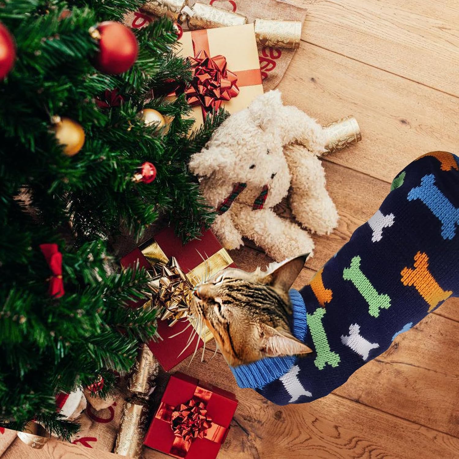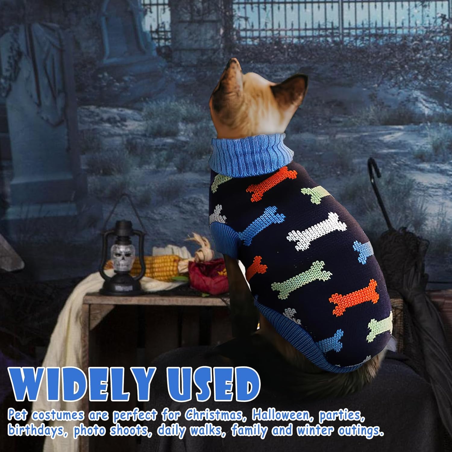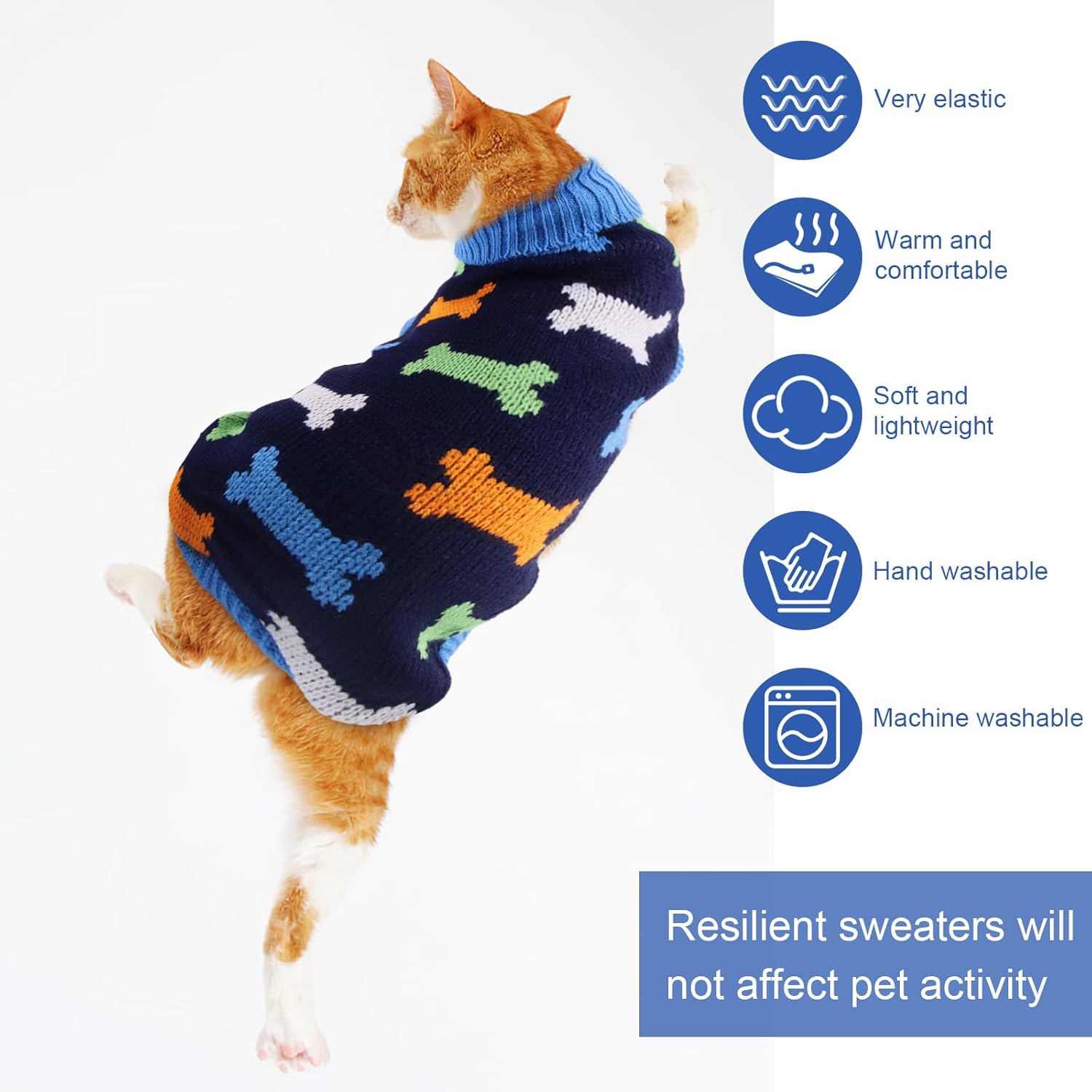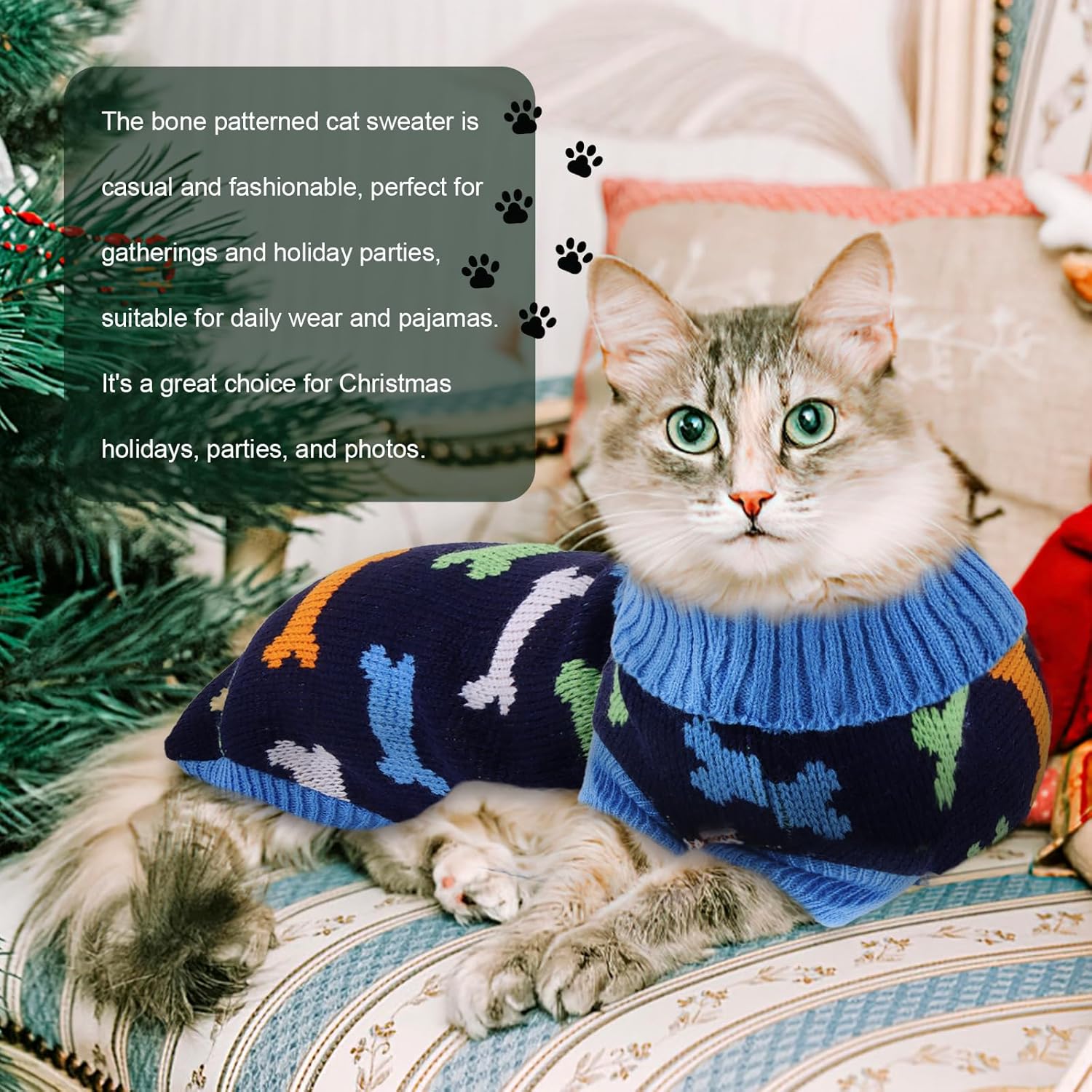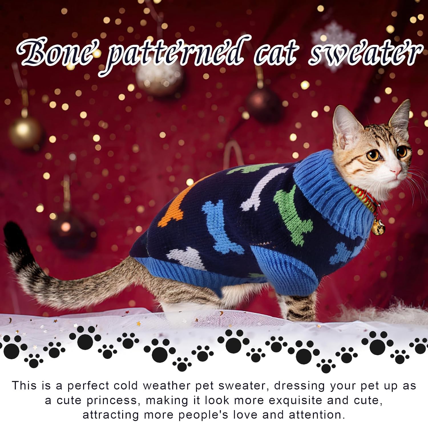 Пуловерът за котки е украсен със сърца, кости и шарки на северни елени и е идеален за ежедневни разходки, фотосесии, партита, рождени дни и за да станете център на внимание.