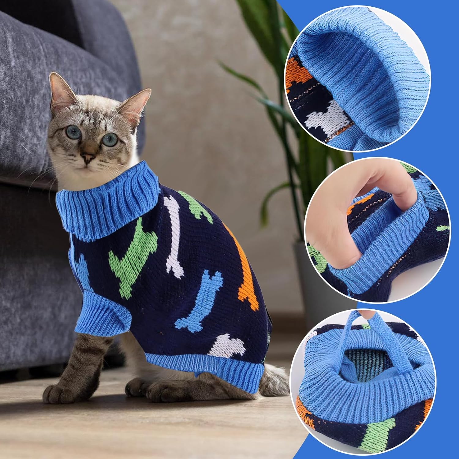 Нашият зимен пуловер за котки, пуловер за котки за носене, е идеален за поддържане на топлината през зимата. Има плетен дизайн на райета и е красиво изработен и оформен.