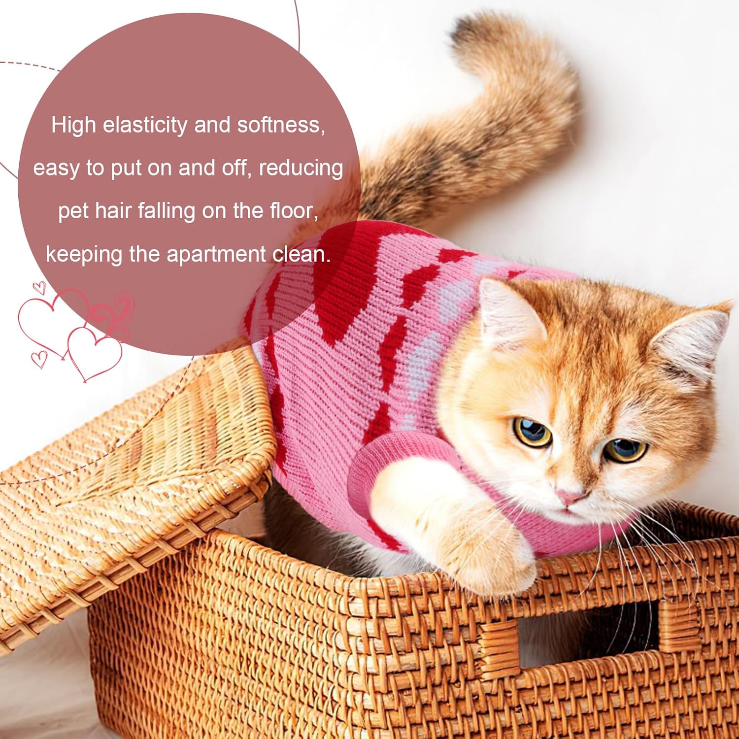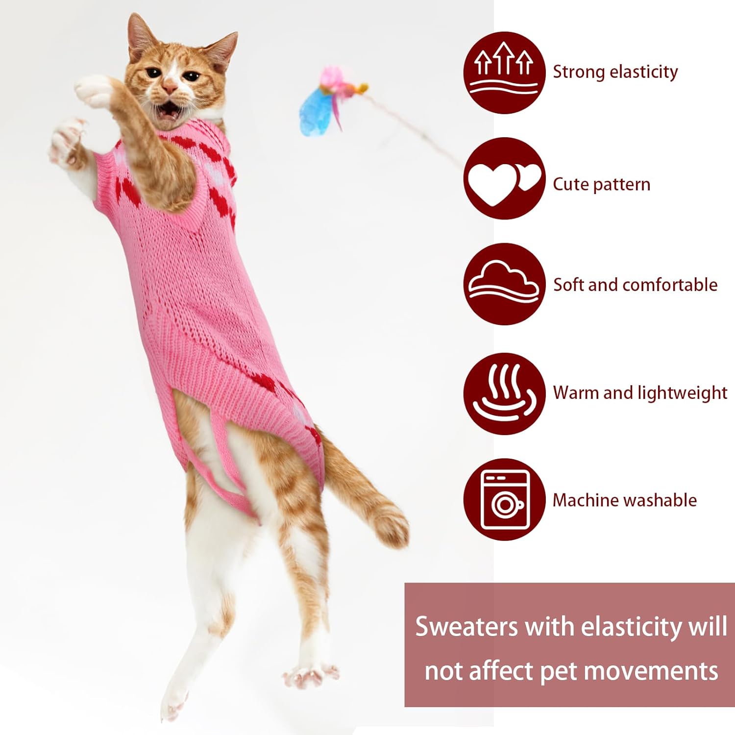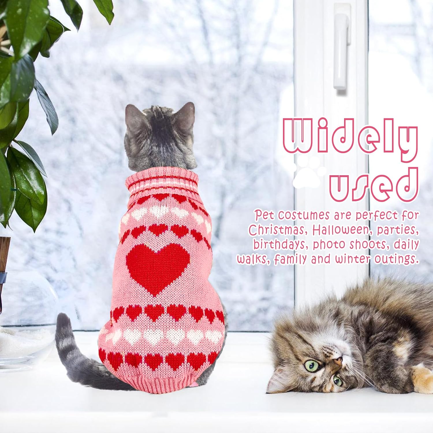 Пуловерът за котки е украсен със сърца, кости и шарки на северни елени и е идеален за ежедневни разходки, фотосесии, партита, рождени дни и за да станете център на внимание.