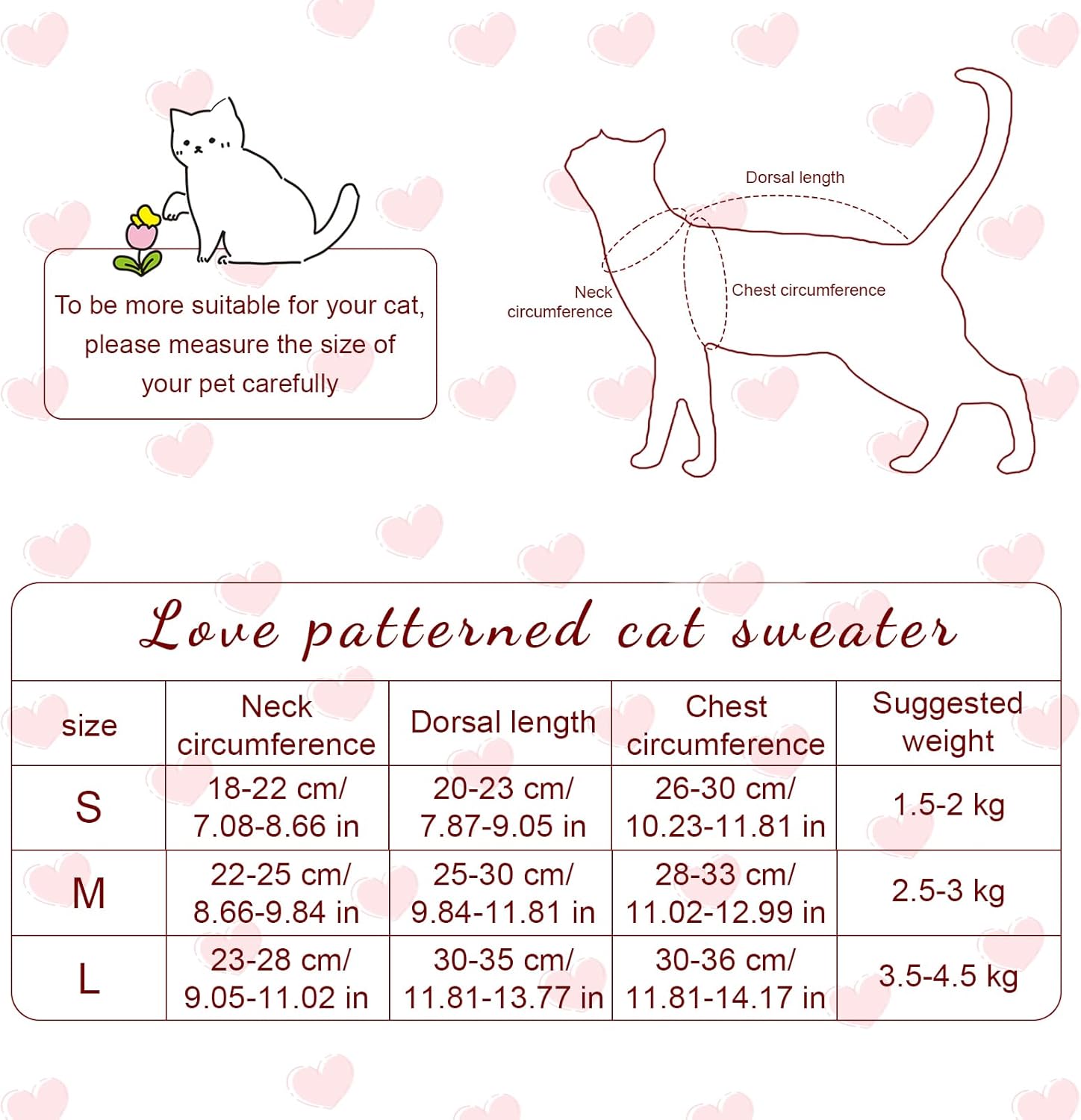 2. Поради ръчно измерване, пуловерът може да има грешка от 1-3 см. Ако измереният размер на вашия домашен любимец е между два размера, препоръчително е да изберете по-голям размер.