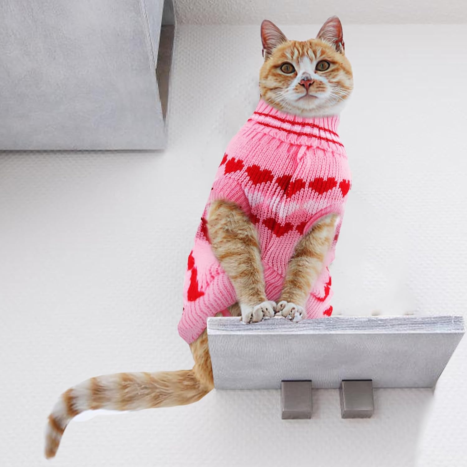Нашият зимен пуловер за котки, пуловер за котки за носене, е идеален за поддържане на топлината през зимата. Има плетен дизайн на райета и е красиво изработен и оформен.