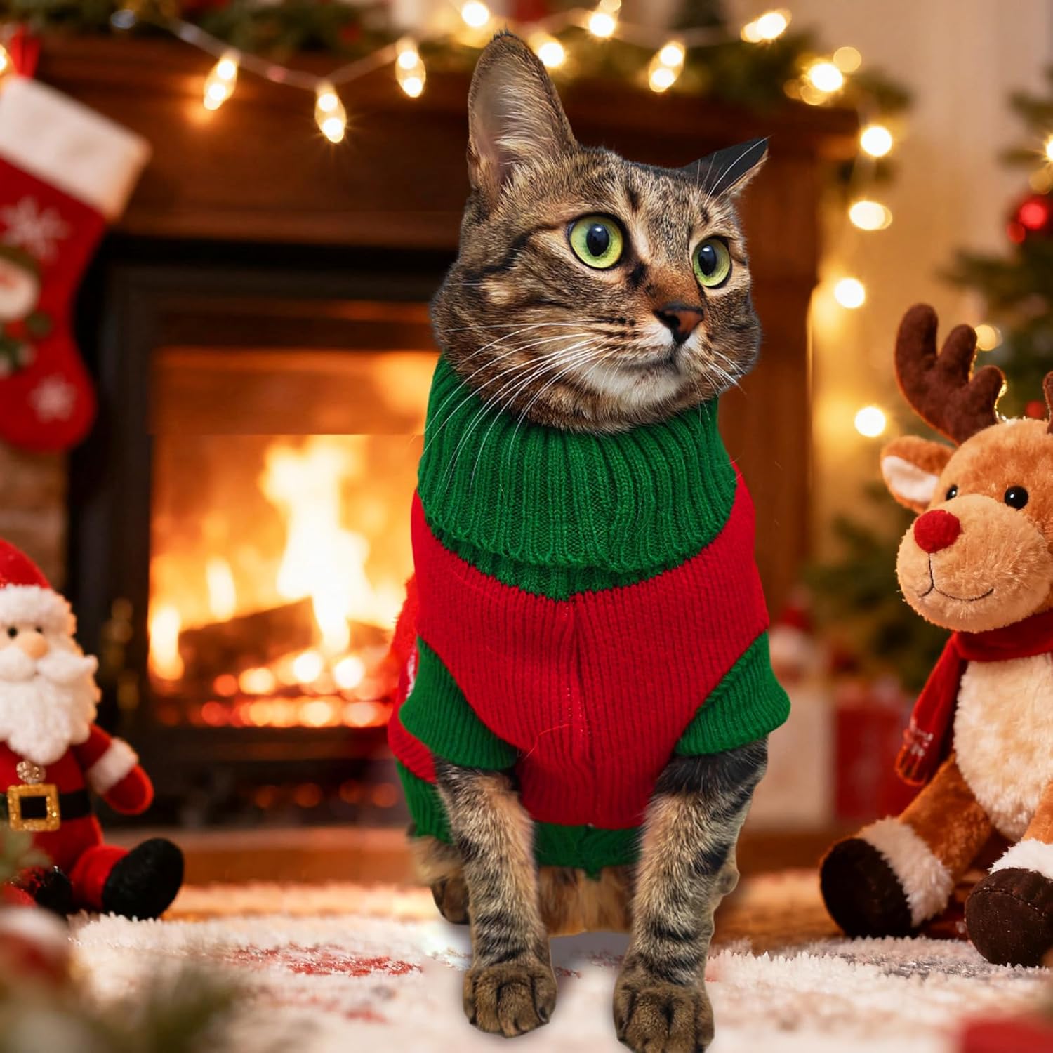 Пуловерът за котки е украсен със сърца, кости и шарки на северни елени и е идеален за ежедневни разходки, фотосесии, партита, рождени дни и за да станете център на внимание.