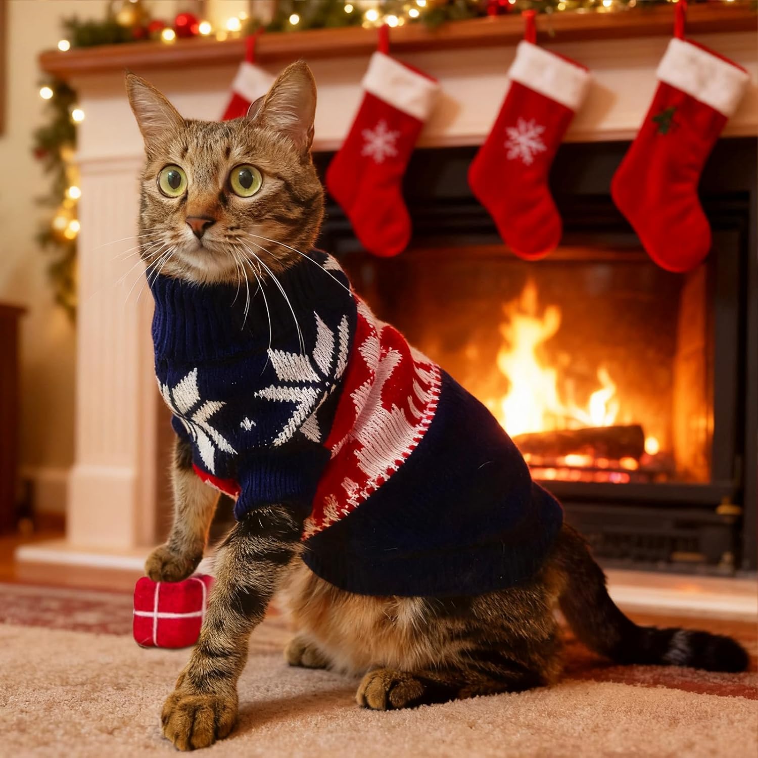 Нашият зимен пуловер за котки, пуловер за котки за носене, е идеален за поддържане на топлината през зимата. Има плетен дизайн на райета и е красиво изработен и оформен.