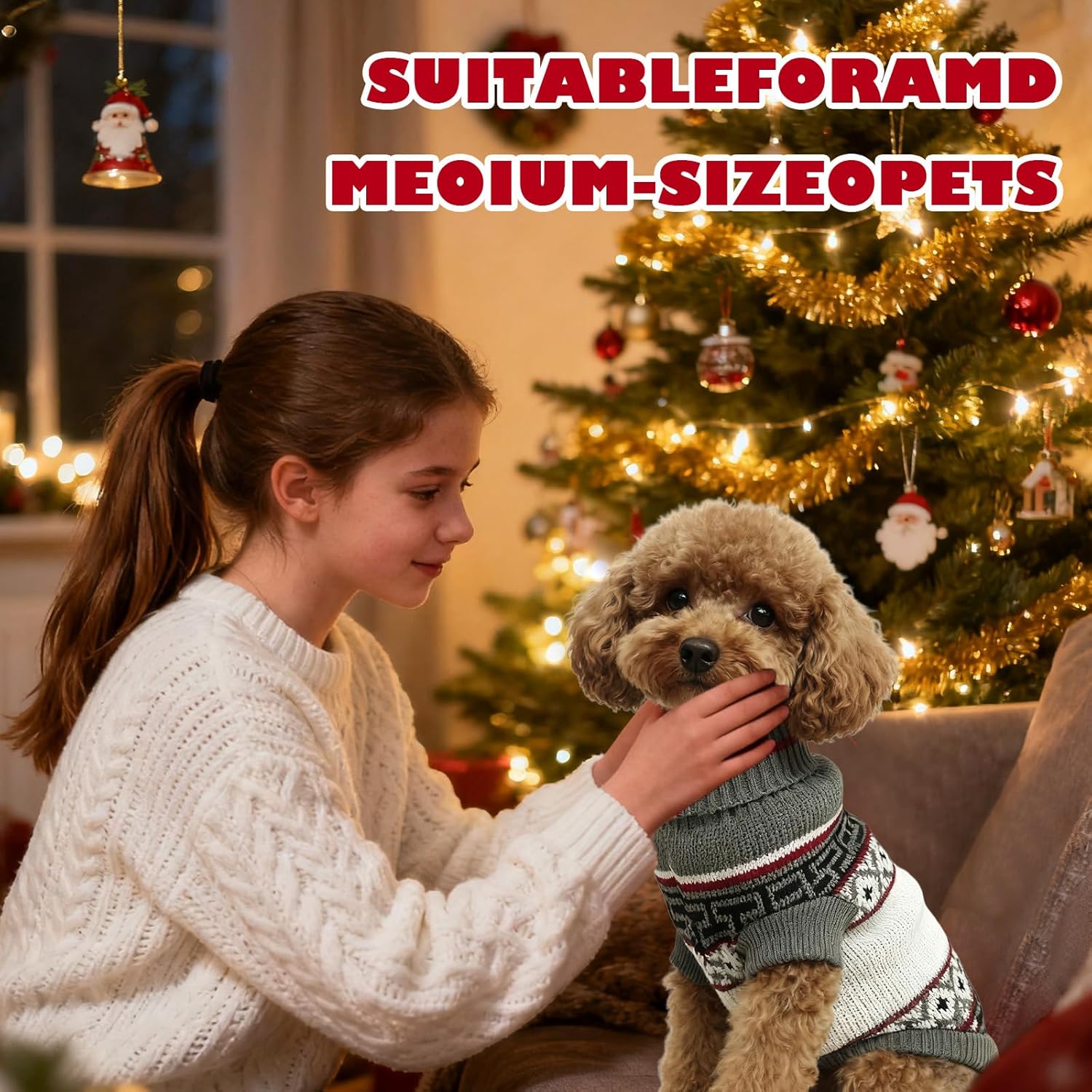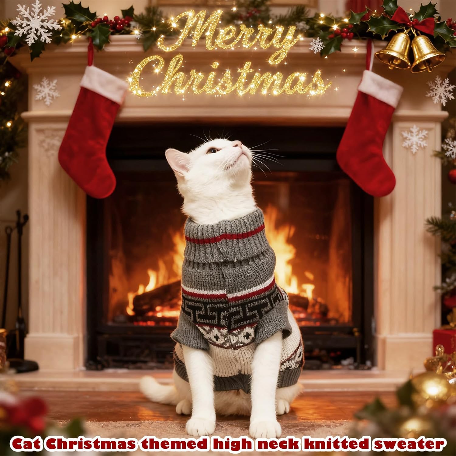 Пуловерът за котки е украсен със сърца, кости и шарки на северни елени и е идеален за ежедневни разходки, фотосесии, партита, рождени дни и за да станете център на внимание.