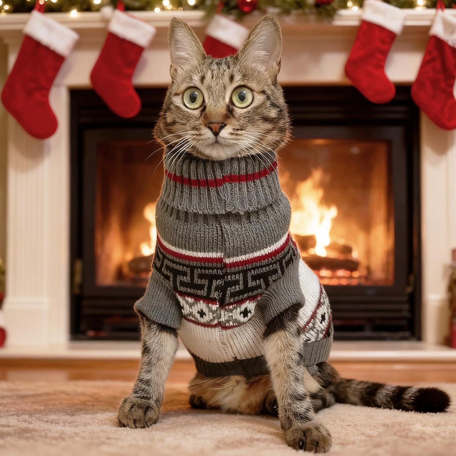 Нашият зимен пуловер за котки, пуловер за котки за носене, е идеален за поддържане на топлината през зимата. Има плетен дизайн на райета и е красиво изработен и оформен.
