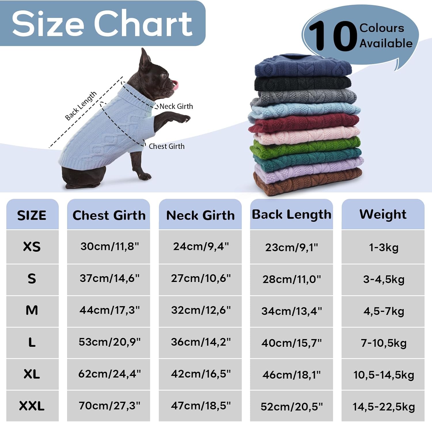 XS: Гръб 23 см/9,1 инча, гръден кош 30 см/11,8 инча, шия 23 см/9,1 инча, тегло 2-6 фунта.