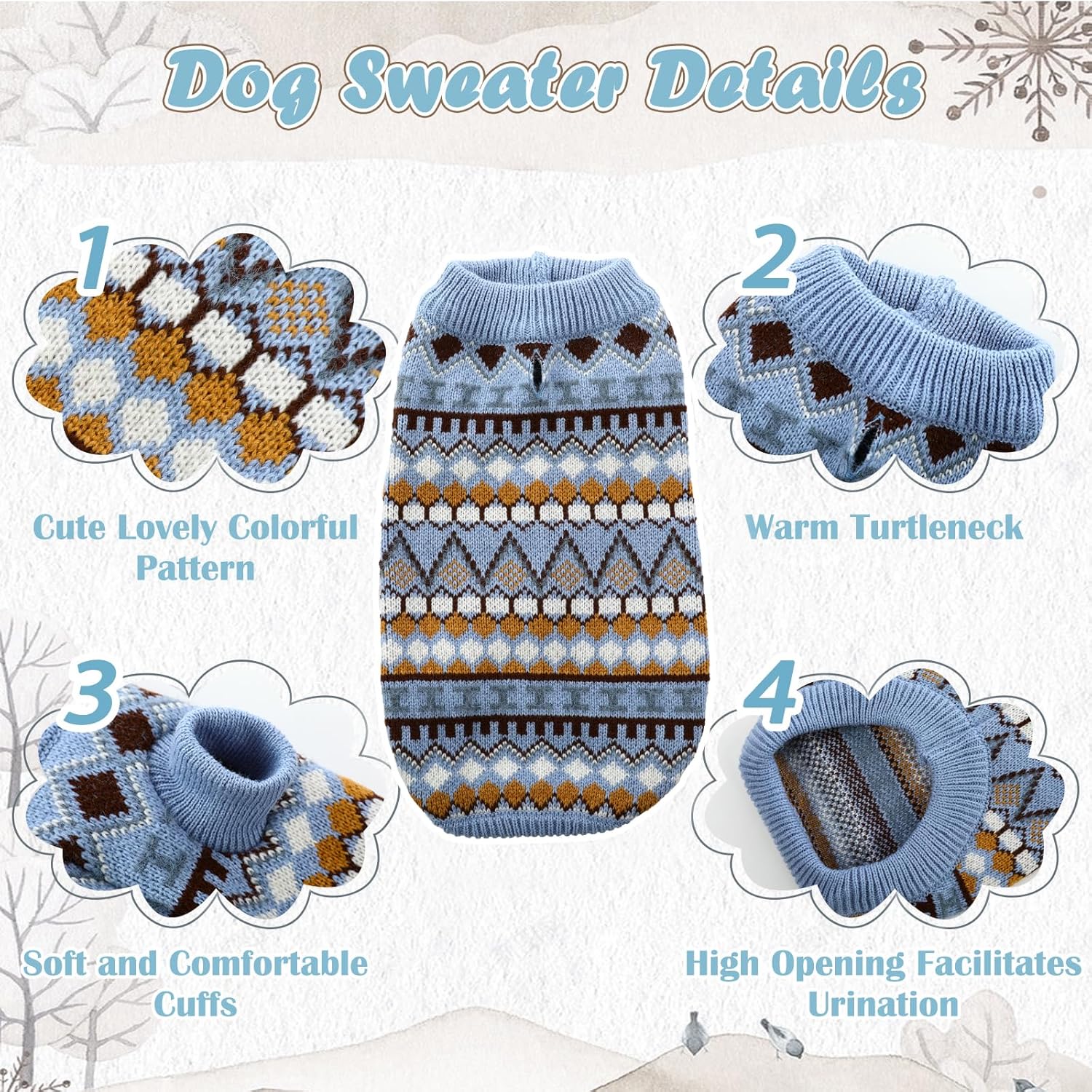 • Сладък модел: Уникалният дизайн на пуловера с кръгло деколте за кучета прави кучето ви да изглежда много привличащо вниманието и привлекателно и го държи топло през есента и зимата.