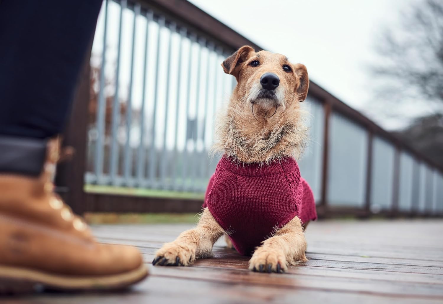 Красив и класически - Пуловерът за кучета Malmö е не само абсолютно актуален с класическия си плетен модел с плетена материя, но и осигурява уютна топлина в студените дни. Независимо дали кучето леко мръзне поради оскъдния подкосъм, е по-възрастно, особено младо или е леко здравословно - всеки четириног приятел е благодарен за един пухкав и топъл пуловер за кучета. Пуловерът за кучета Malmö се характеризира с особено висок комфорт при носене благодарение на отличното прилягане и стои по тялото, без да ограничава естественото движение на кучето. Между другото: в случай на внезапен дъжд или снеговалеж, върху пуловера може просто да се издърпа кучешко (дъждобран), за да се предпази четириногият приятел от неприятна влага. Ако се замърси, пуловерът за кучета може лесно да се пере на 30°C.