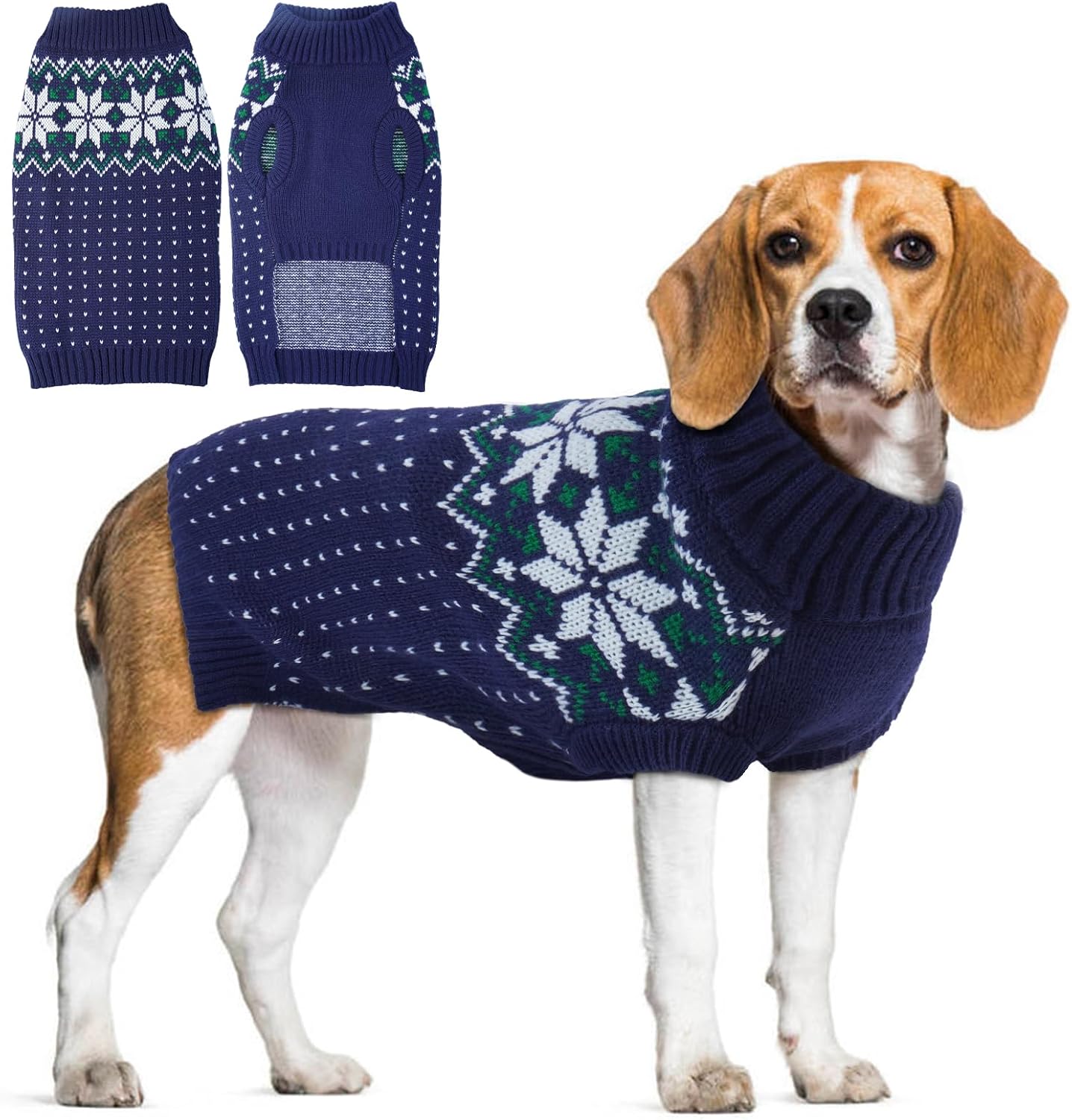 • Дизайнерска креативност - Топъл пуловер за куче от трикотаж е с класически решетъчен дизайн и много коледни елементи, като коледни елхи и червено и зелено, за да направи кучето ви да изглежда по-сладко и красиво.