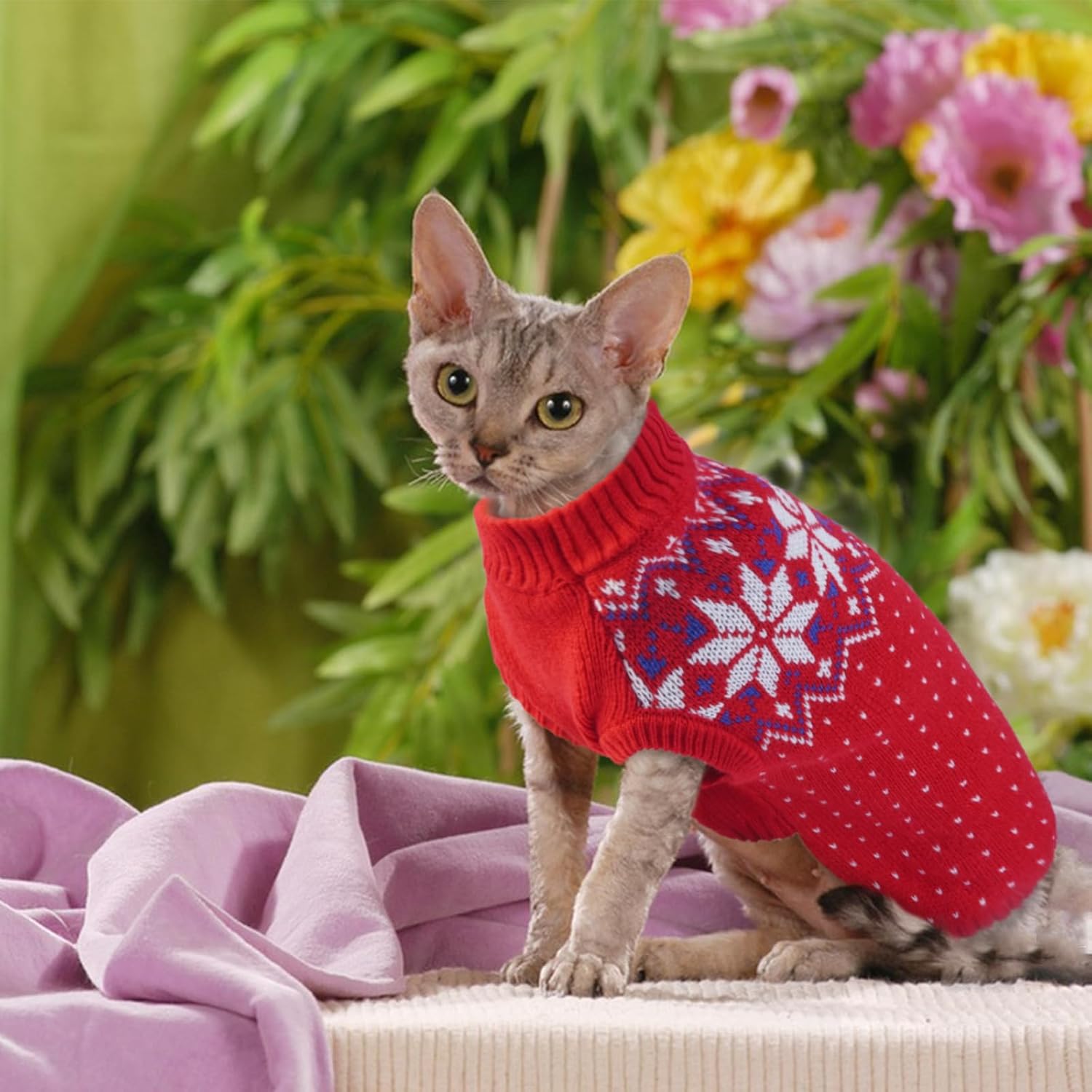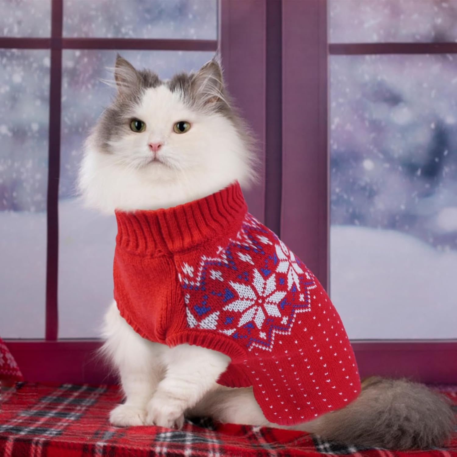 Пуловер за кучета, Коледен пуловер Куче, Пуловер за кучета от полар Коледен пуловер за кучета с шарка на снежинка, Пуловер за кучета среден размер Кучета за Малтийски болонка Джек Ръсел, Червен, M