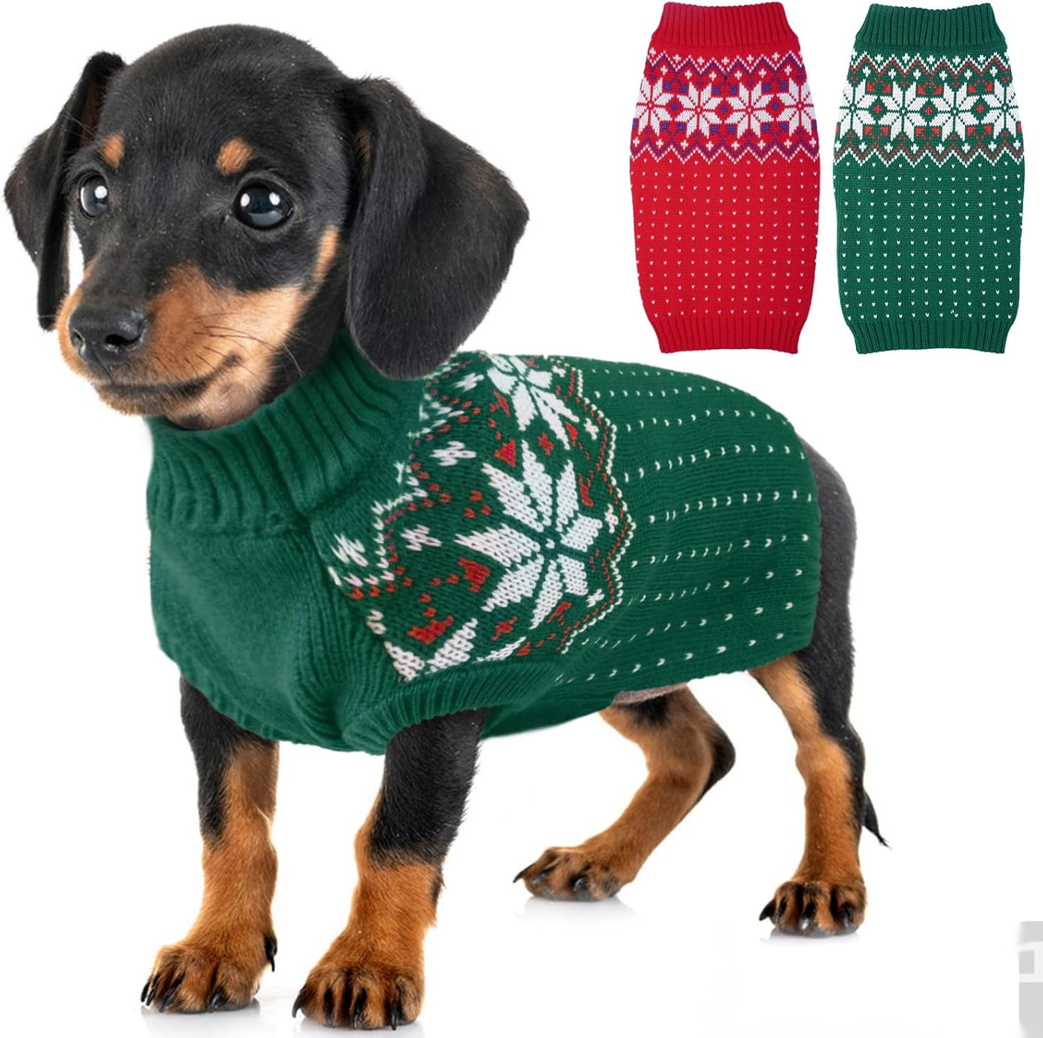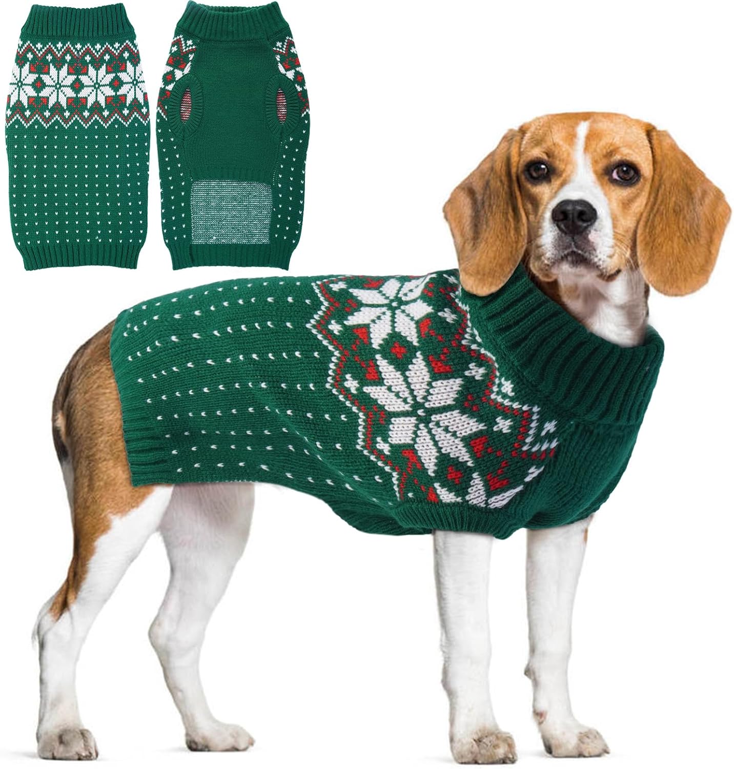 Пуловер за кучета, Коледен пуловер за кучета, Поларен пуловер за кучета Коледен пуловер с шарка на снежинка, Пуловер за кучета Големи кучета за Лабрадор, Джак Ръсел, Ваймарер, Зелен, XL
