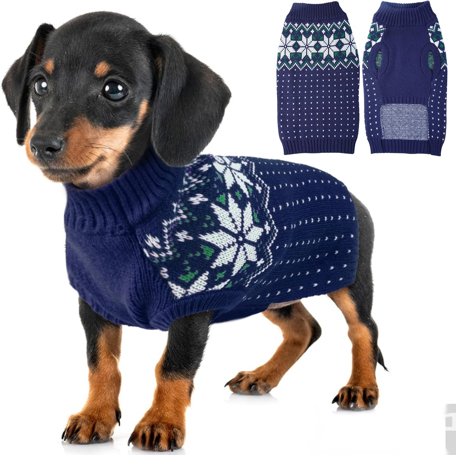 • Дизайнерска креативност - Топъл пуловер за куче от трикотаж е с класически решетъчен дизайн и много коледни елементи, като коледни елхи и червено и зелено, за да направи кучето ви да изглежда по-сладко и красиво.