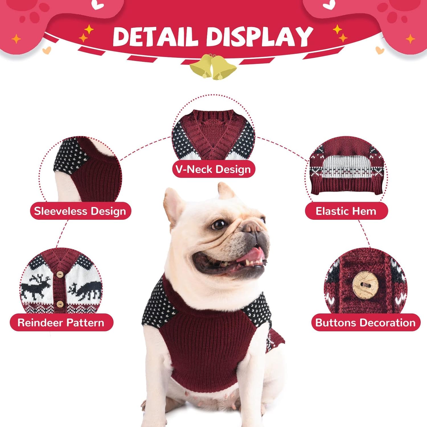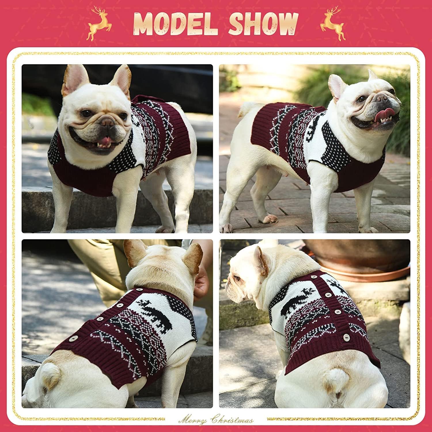 Пуловер за кучета Коледен пуловер за кучета, Зимен плетен пуловер за домашни любимци, Коледен пуловер, Топъл, Моден, Празничен, Парти, Подарък