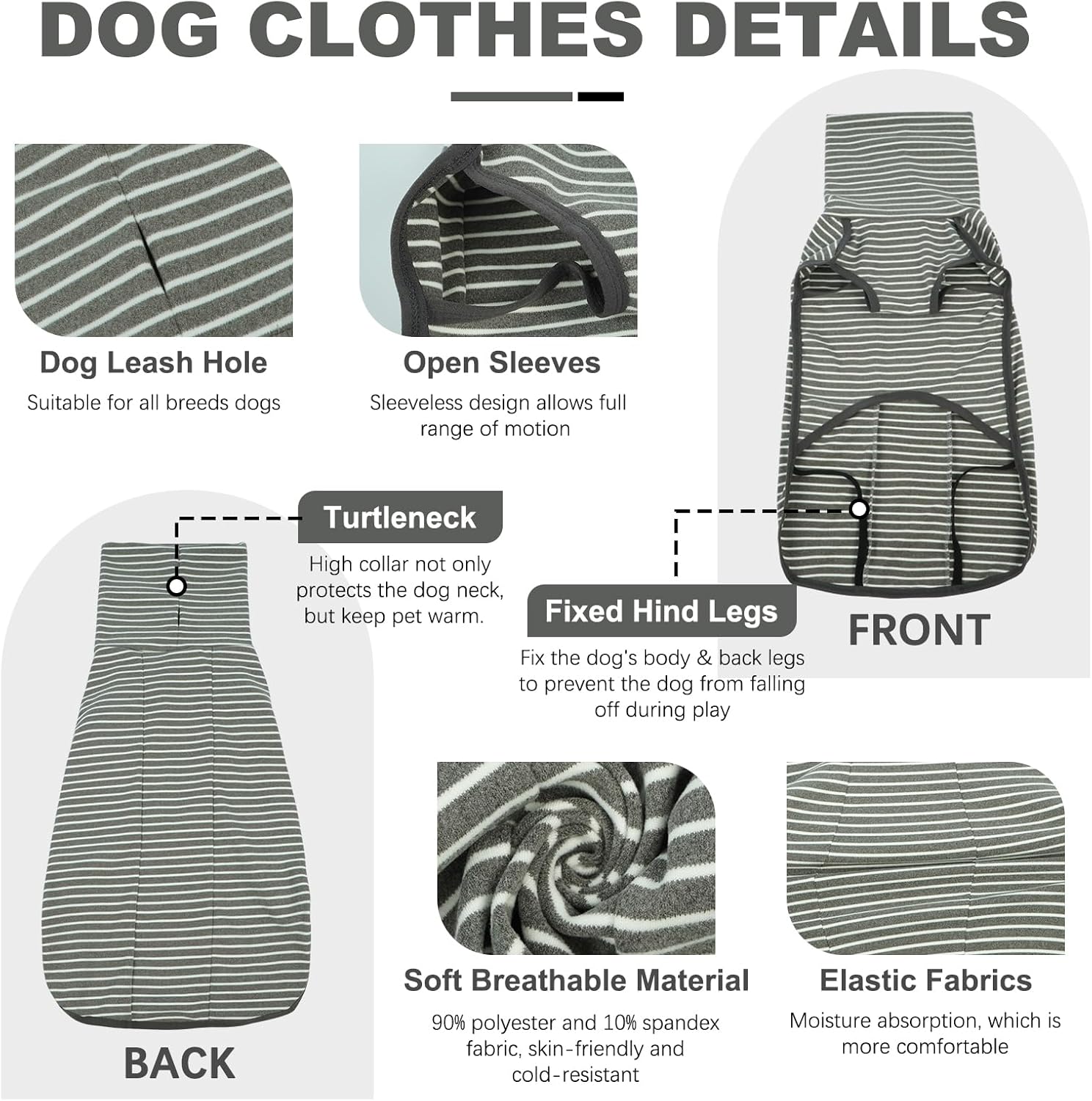 • Пуловер за кучета - лесен за носене: Еластичният пуловер за кучета е лесен за обличане и събличане. Плюс това, свободен дизайн без ръкави за допълнителна свобода на движение, за да може кучето ви да ходи и да ходи до тоалетна удобно.