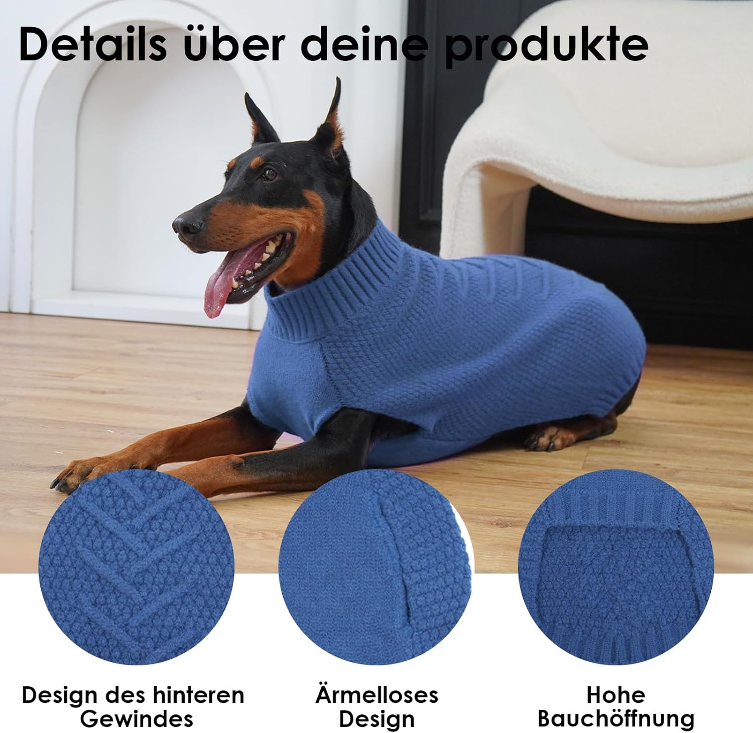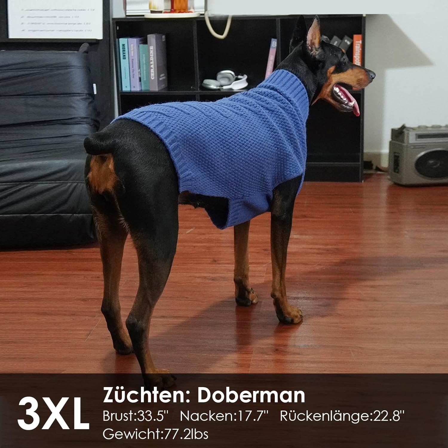 Пуловер за кучета, Пуловер за кучета за големи кучета, Плетеен пуловер за кучета, Дебел плат Пуловер за домашни любимци за зимата, Поларен пуловер за кучета за питбул, лабрадор, дънково син, 2XL