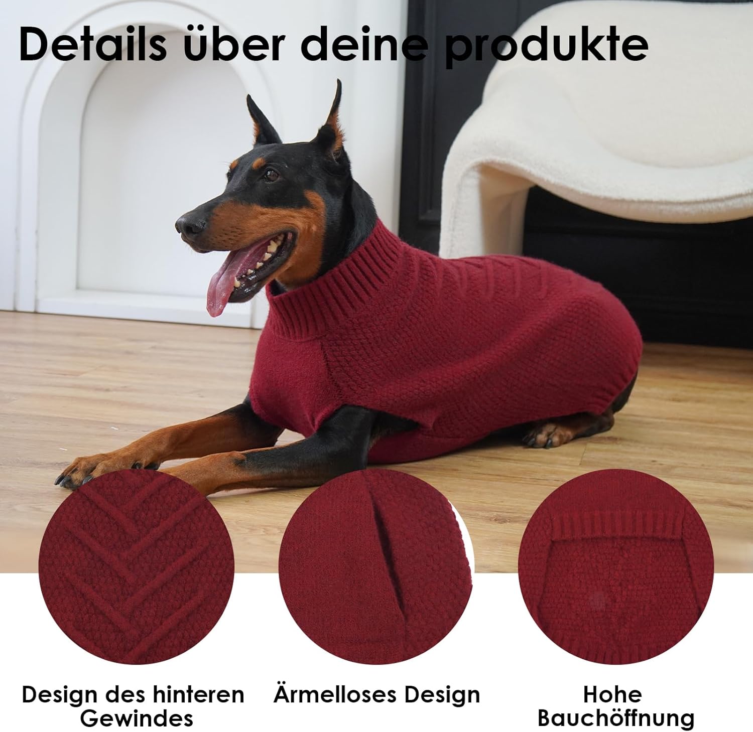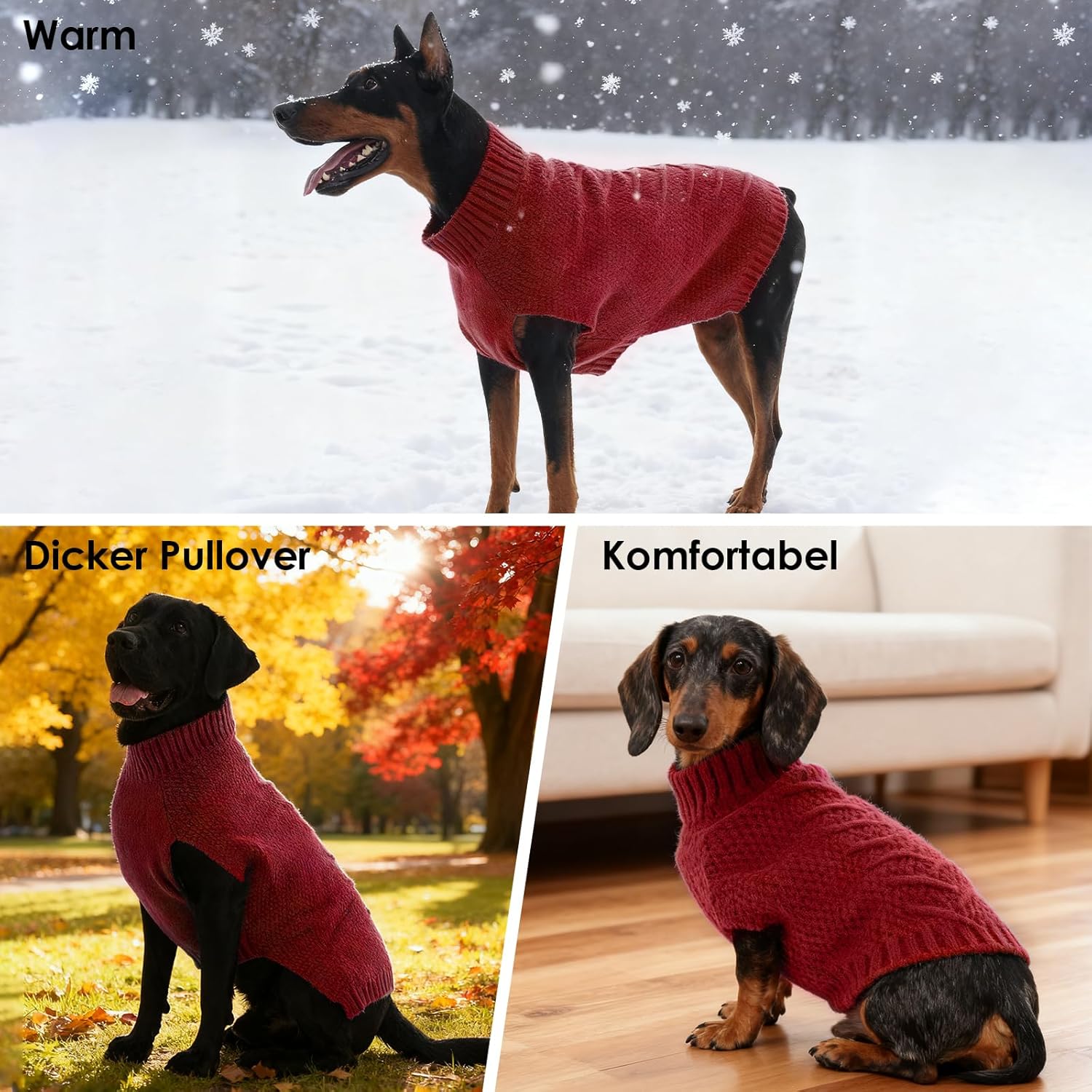 Пуловер за кучета, Пуловер за кучета за големи кучета, Плетеен пуловер за кучета, Дебел плат Пуловер за домашни любимци за зимата, Поларено яке за кучета Лабрадор, Червен, 3XL