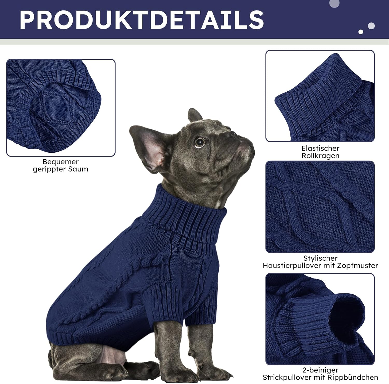 • Топлина и защита през зимата: Този топъл пуловер за кучета ще държи кучето ви топло и уютно през студените зимни месеци. Класически пуловер за кучета, който предлага максимална защита и стил и е задължителен за студения сезон. Подходящ за породи като френски булдози, дакели, чихуахуа, коргита и други.
