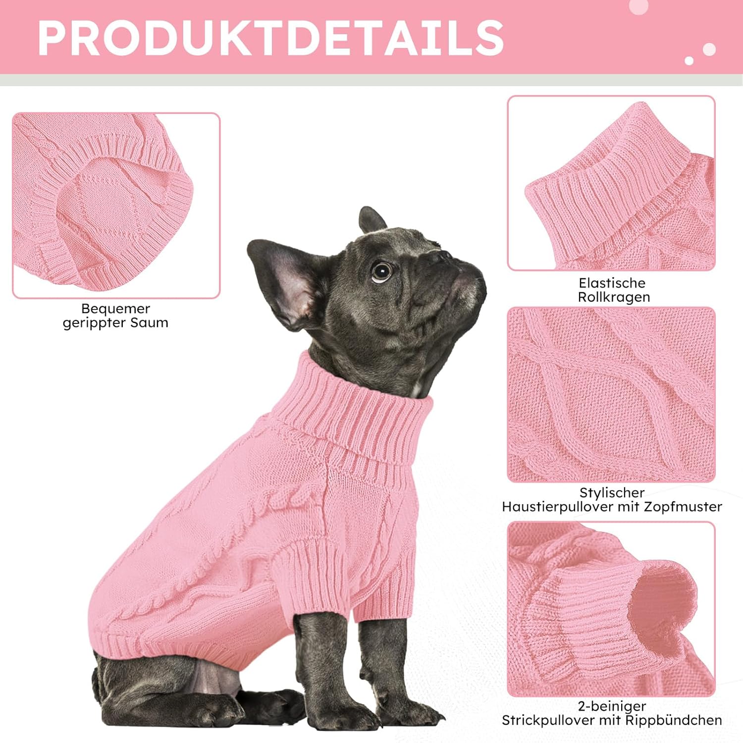 Пуловер за кучета Queenmore Dachshund, пуловер за малки кучета, топъл пуловер за кучета, плетен пуловер, плетено палто за кучета с плетка, пуловер за кучета, френски булдог, булдог, чихуахуа, котки корги, розов, XS
