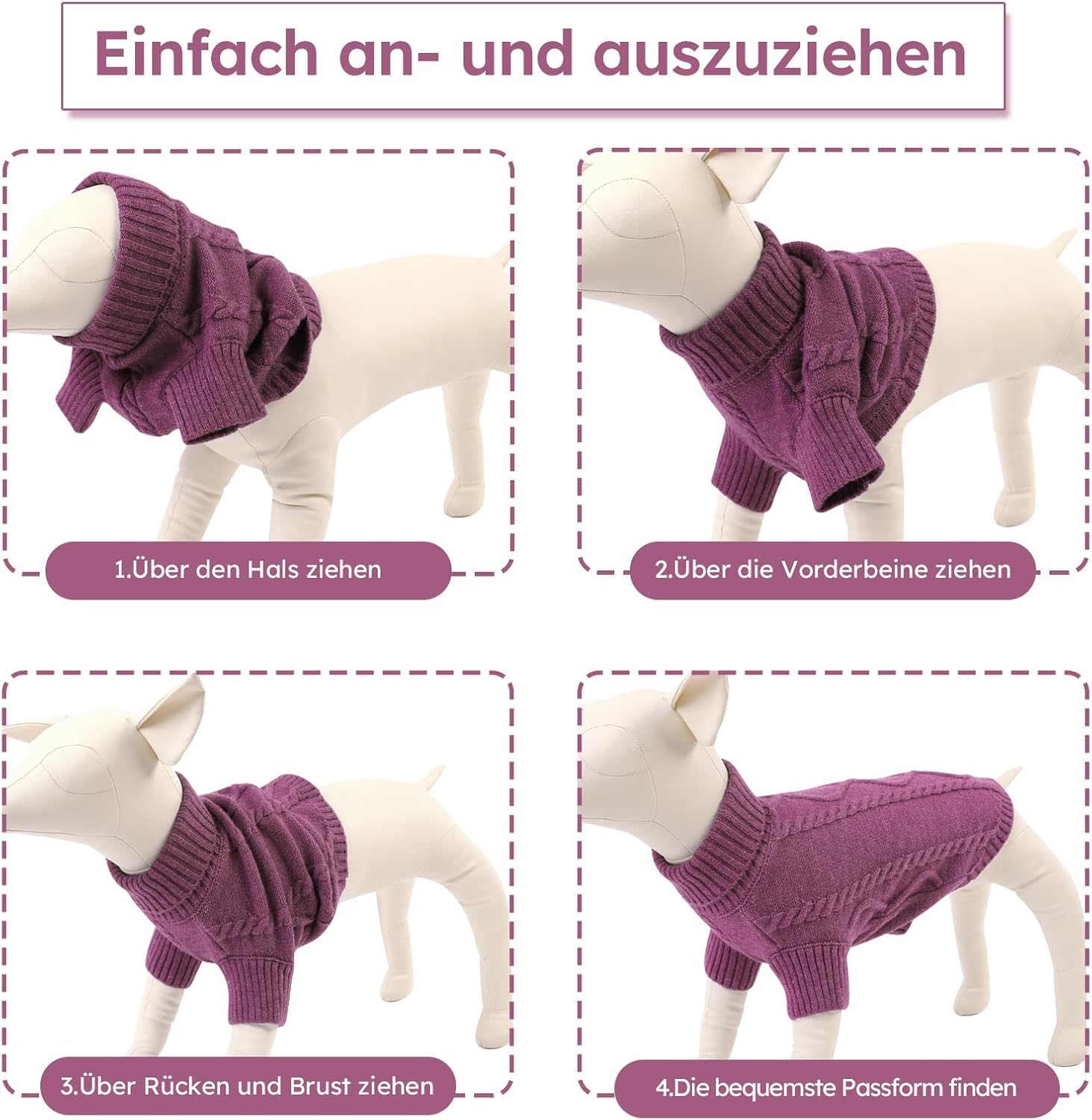 • Универсален: Независимо дали се използва като пуловер за малки или средни кучета, този зимен пуловер е подходящ за различни породи и размери. Плетена пуловер за кучета за всички поводи. Предлага се в различни цветове, подходящи както за мъжки, така и за женски кучета. Подходящ е и като пуловер за котка.