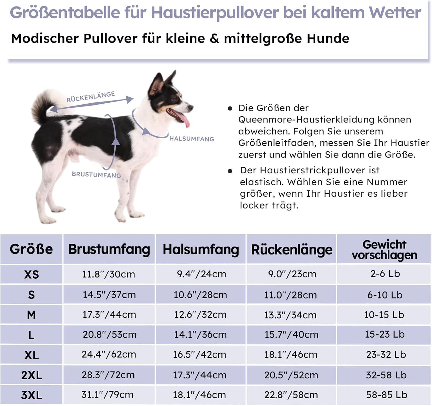 • Универсален: Независимо дали се използва като пуловер за малки или средни кучета, този зимен пуловер е подходящ за различни породи и размери. Плетена пуловер за кучета за всички поводи. Предлага се в различни цветове, подходящи както за мъжки, така и за женски кучета. Подходящ е и като пуловер за котка.